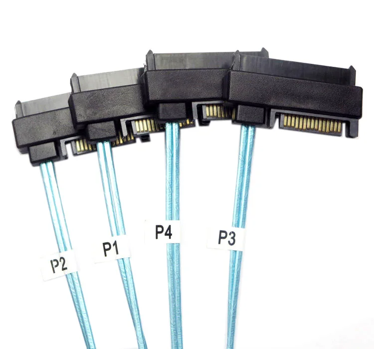 Conectores internos mini SAS SFF-8087 a (4) SFF-8482 con alimentación SATA.