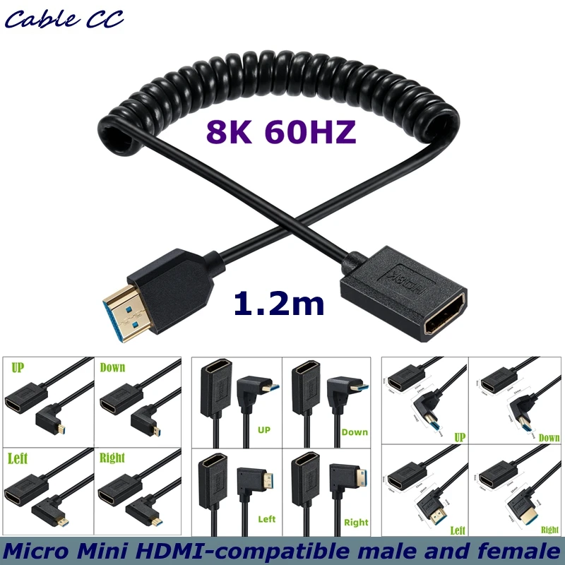 Comprar 1p ángulo de 90 grados 8K60Hz Micro/Mini Compatible con HDMI macho a HDMI hembra Micro cámara plana a Cable de Monitor de TV