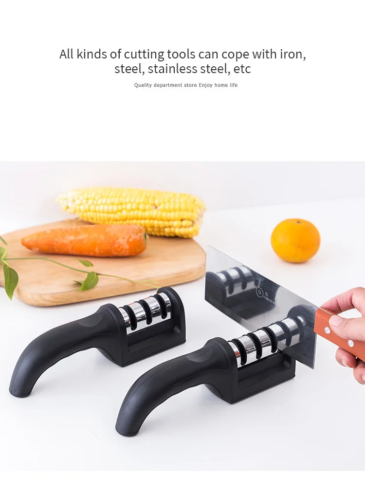 • Diseño de tres segmentos para un afilado versátil :El diseño de tres segmentos de este afilador de cuchillos permite un afilado versátil, lo que lo convierte en una herramienta imprescindible en cualquier cocina.