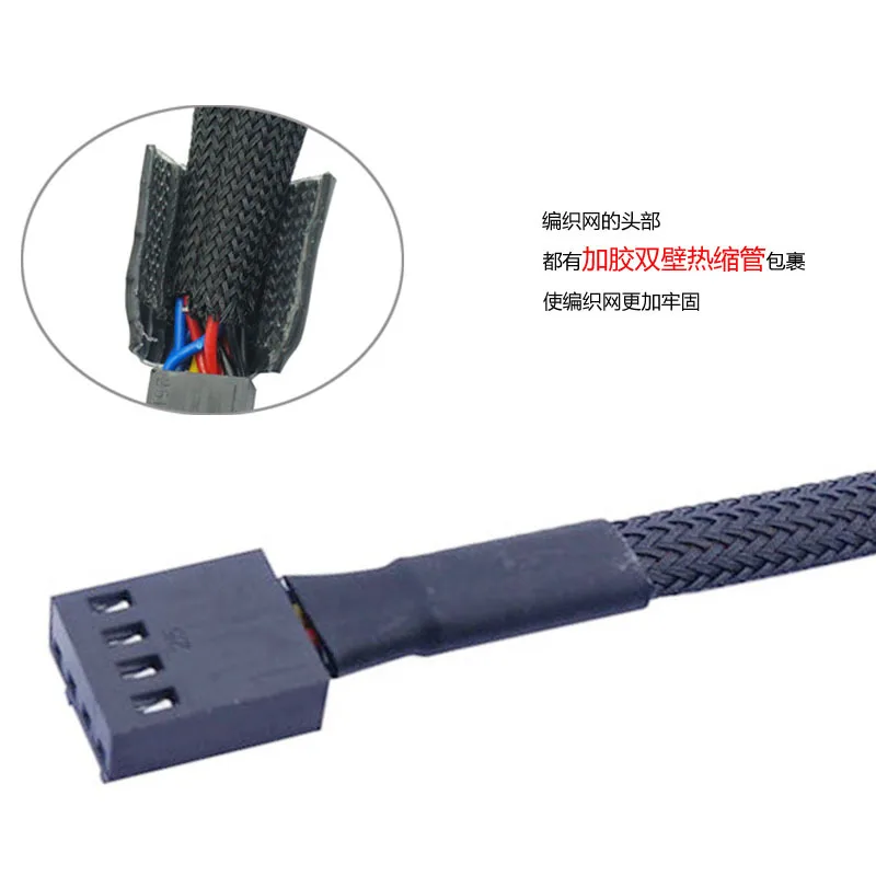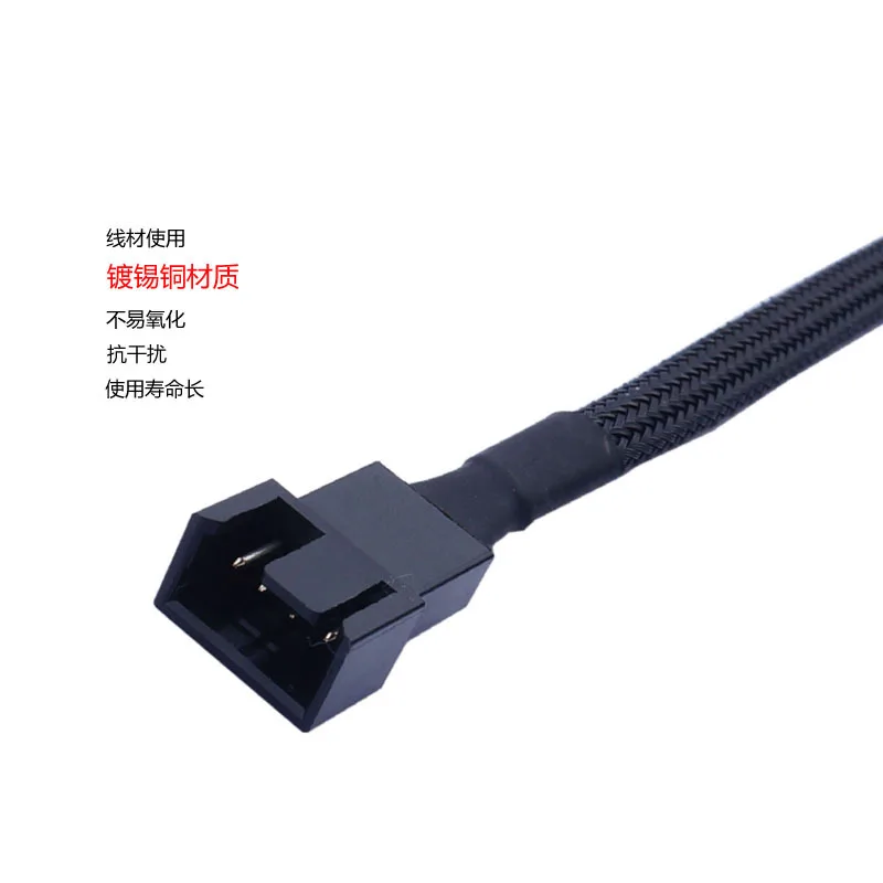 1 cable de extensión PWM placa base CPU 1 arrastre 1/2/3/4 ventilador de 4 pines 4 P Cable adaptador carcasa de ordenador 4 pines Cables de alimentación conectores[Nombre del producto]: cable de extensión de malla de ventilador de 4 pines [esta interfaz se puede utilizar para 3 pines y 4 pines] [Longitud del producto]: 27cm [Modelo de cable]: 1007 24awg [Material aislante]: aislamiento de PVC [Especificación del conductor]: 11*0,12 TS [Material del conductor]: cobre estañado [Diámetro exterior del cable]: od1.4mm [Temperatura nominal]: 80 ℃ [Color del cable]: Negro [Peso del producto]: 6g [Interfaz del producto]: Interfaz de ventilador de ordenador de 4 pines [Función del producto]: un producto utilizado para extender la interfaz de 4 pines Uso: el enchufe de la CPU (4 pines) no es lo suficientemente largo y los tres pines del ventilador del chasis no lo son, etc. Extiende y expande principalmente la interfaz de tres pines de la placa base. [Imagen del producto:]