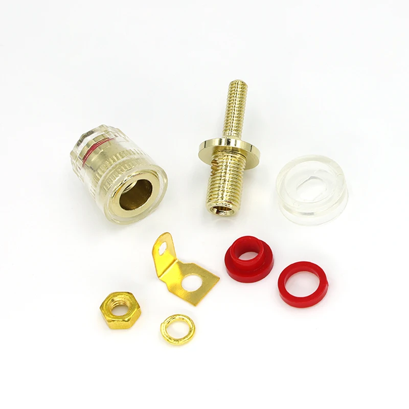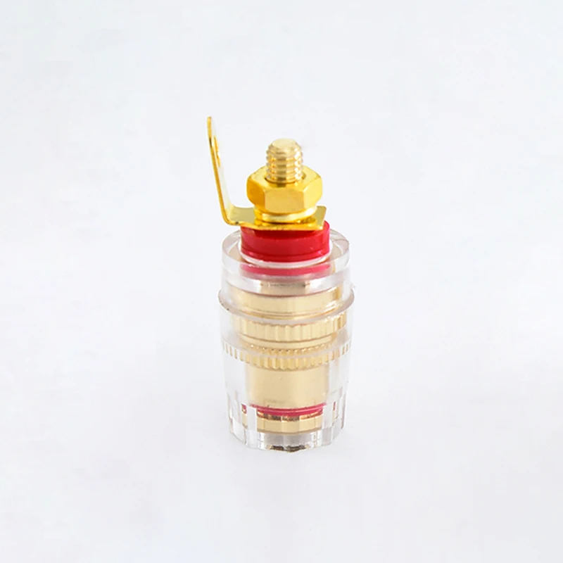 High grade crystal terminal, with a crystal shell, long tail, oxidation resistance, low distortion, and high quality. The main body is made of copper and the surface is plated with real gold. It is dedicated to DIY enthusiasts and is mainly used for power amplifier case terminals and speaker terminals.