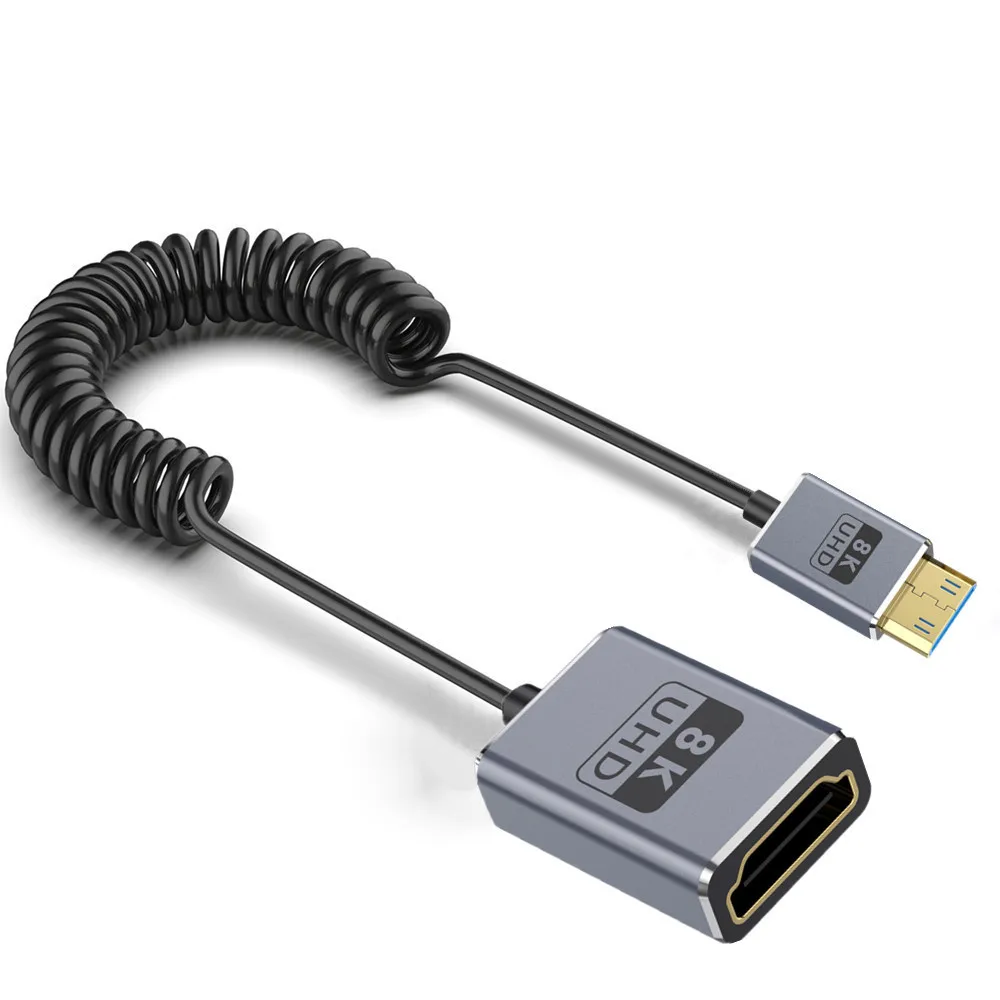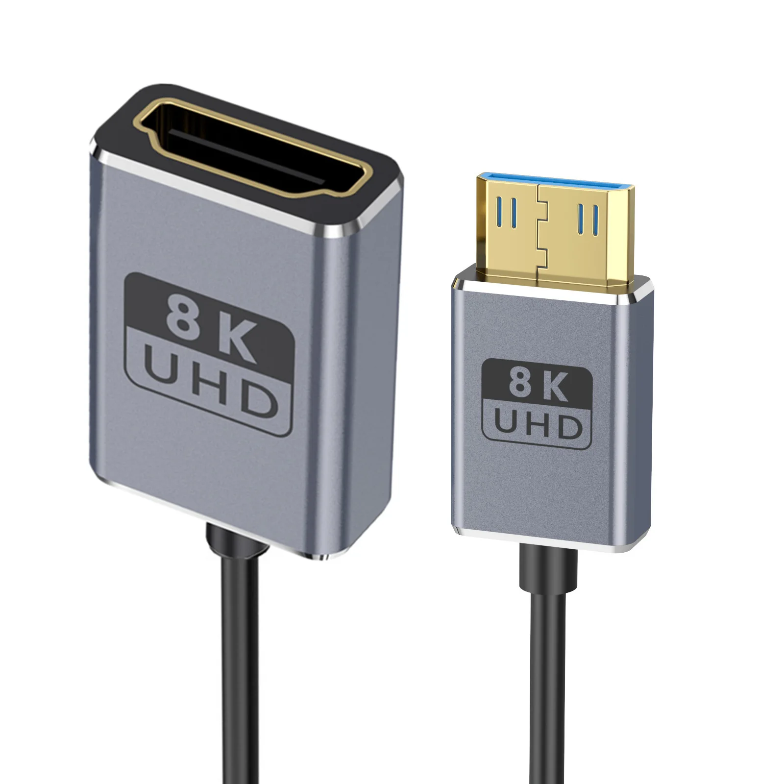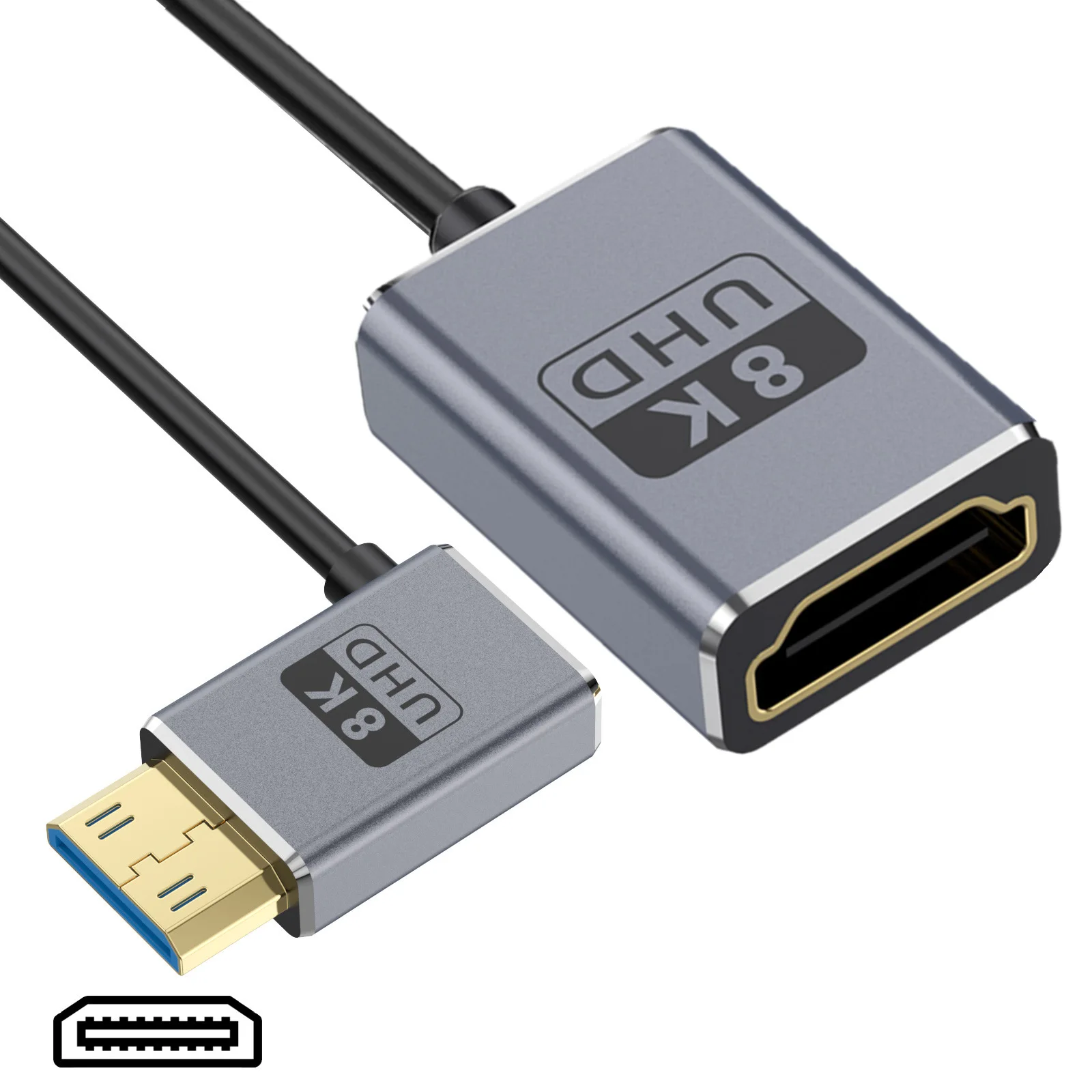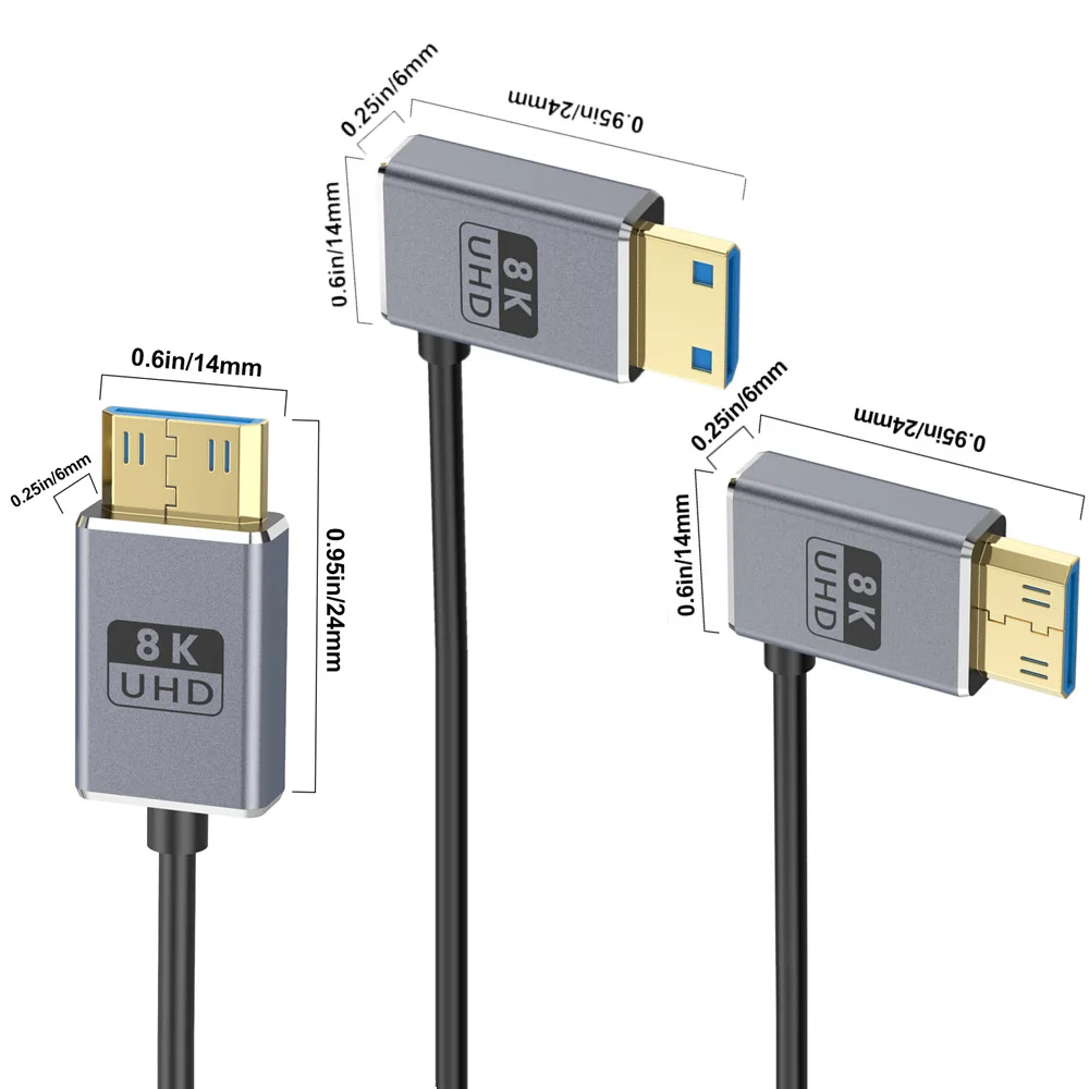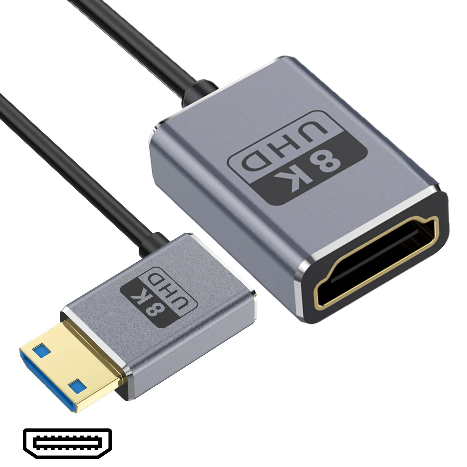 Cable coaxial HDMI Super Extreme Slim 8K @60Hz Mini HDMI a HDMI 2.1, cable HDMI fino de ultra alta velocidad de 48 Gbps Φ2.5 mm, 4K @ 120 Hz Compatible con cámara, videocámara, tableta gráfica/tarjeta de vídeo, computadora portátil y más