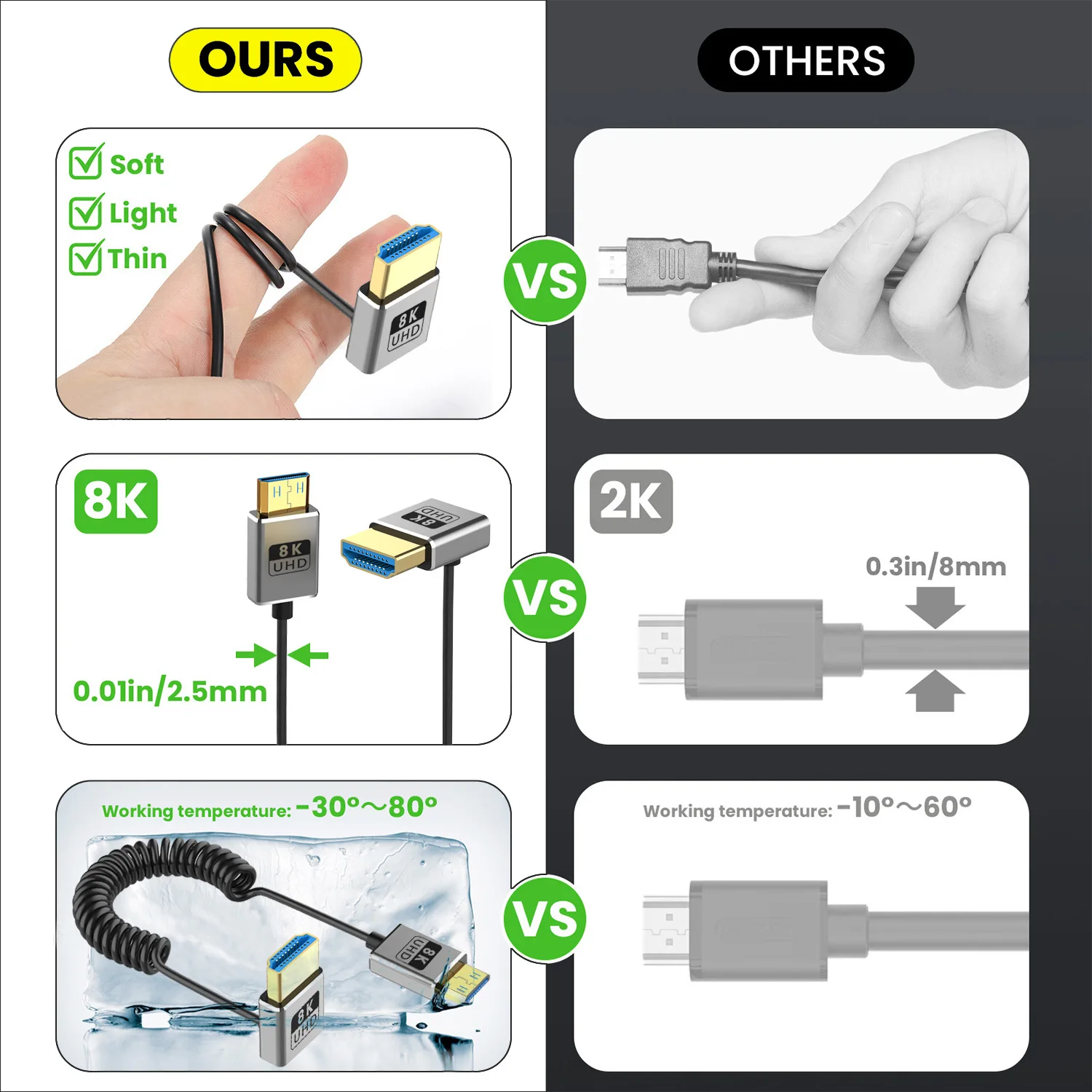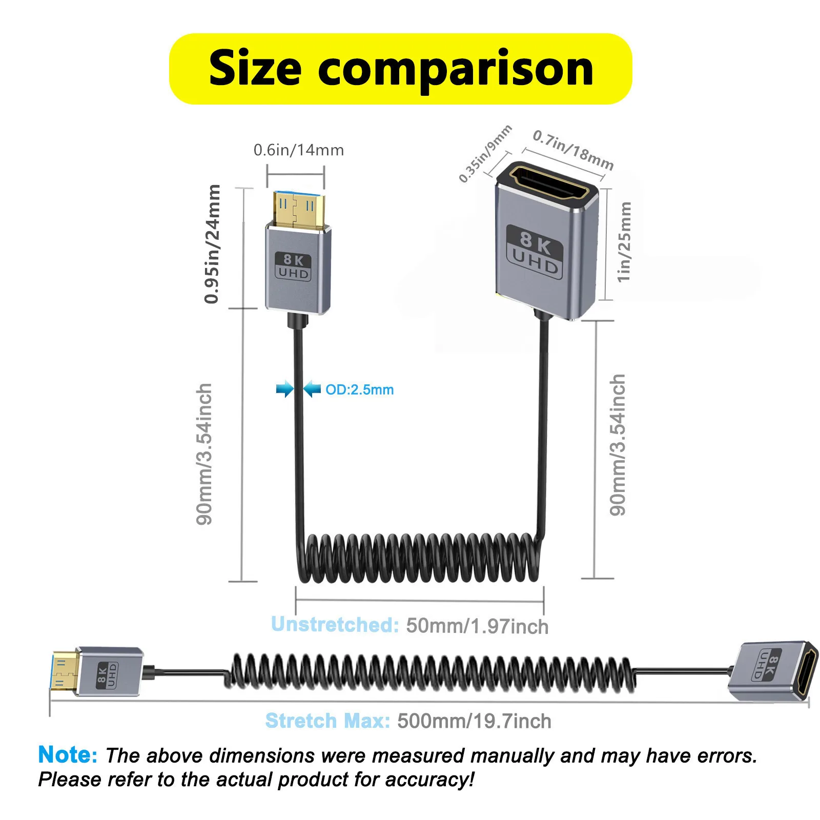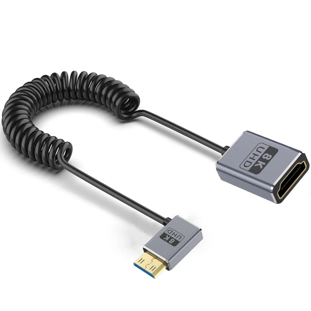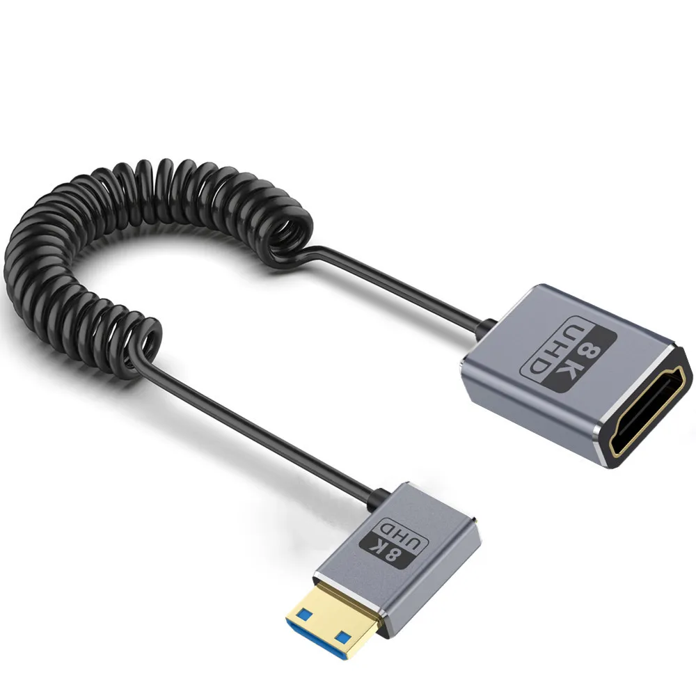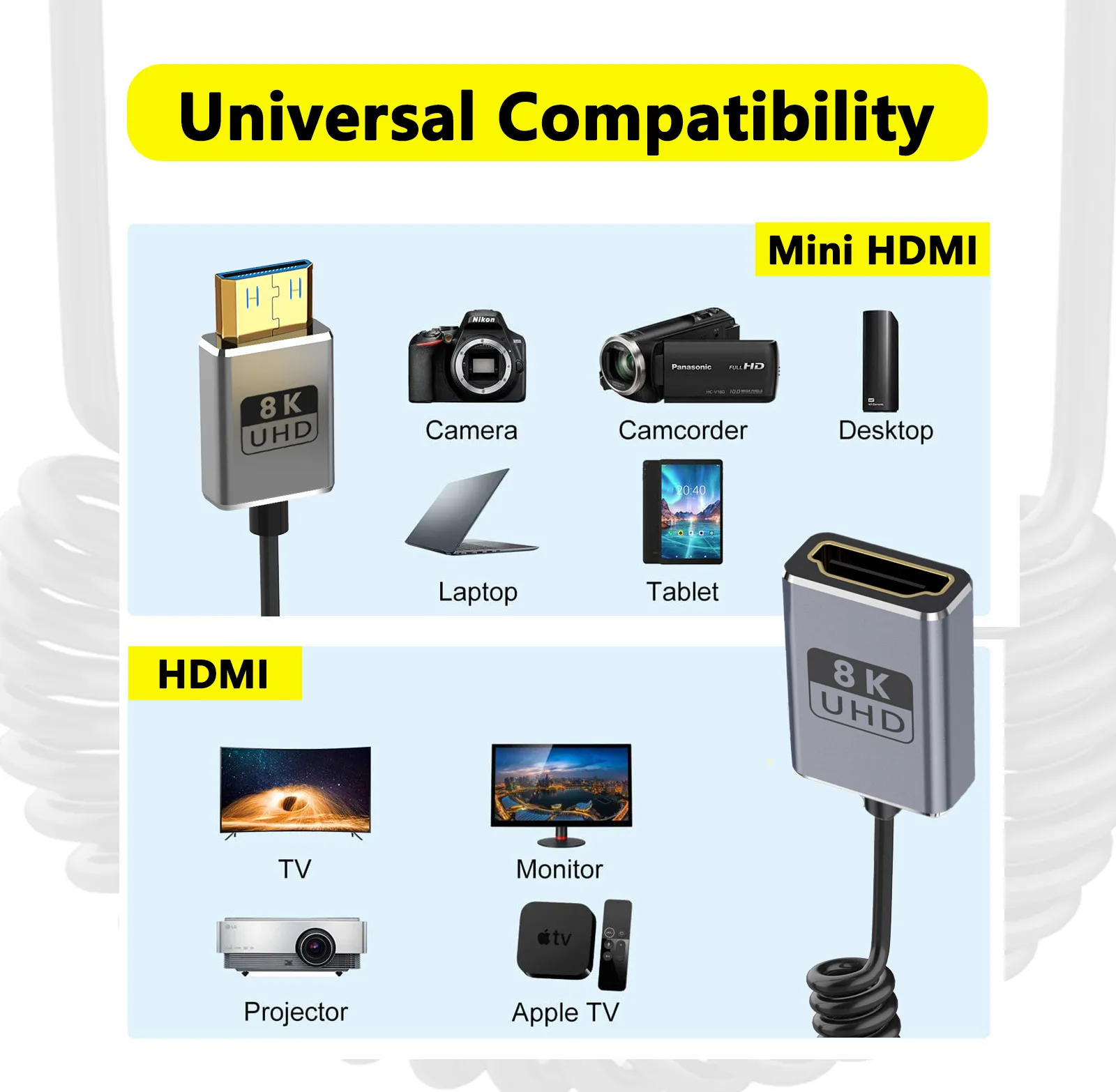 Cable coaxial HDMI Super Extreme Slim 8K @60Hz Mini HDMI a HDMI 2.1, cable HDMI fino de ultra alta velocidad de 48 Gbps Φ2.5 mm, 4K @ 120 Hz Compatible con cámara, videocámara, tableta gráfica/tarjeta de vídeo, computadora portátil y más