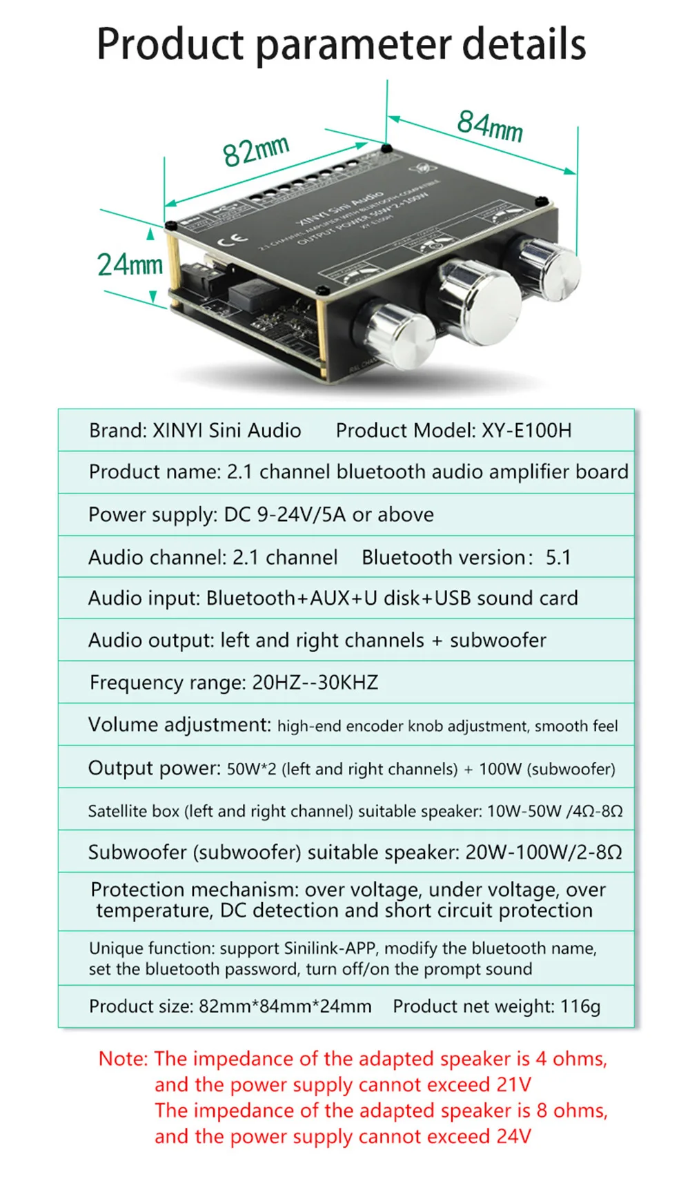 Bluetooth 5,1 50W * 2 + 100W TPA3116 módulo de placa amplificadora de potencia de Audio HIFI 2.1 subwoofer alto y bajo