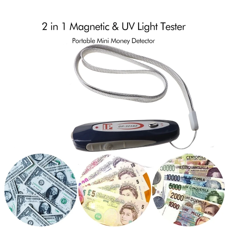 Mini comprobador detector de notas de dinero de moneda UV 2 en 1 con cordón nuevo