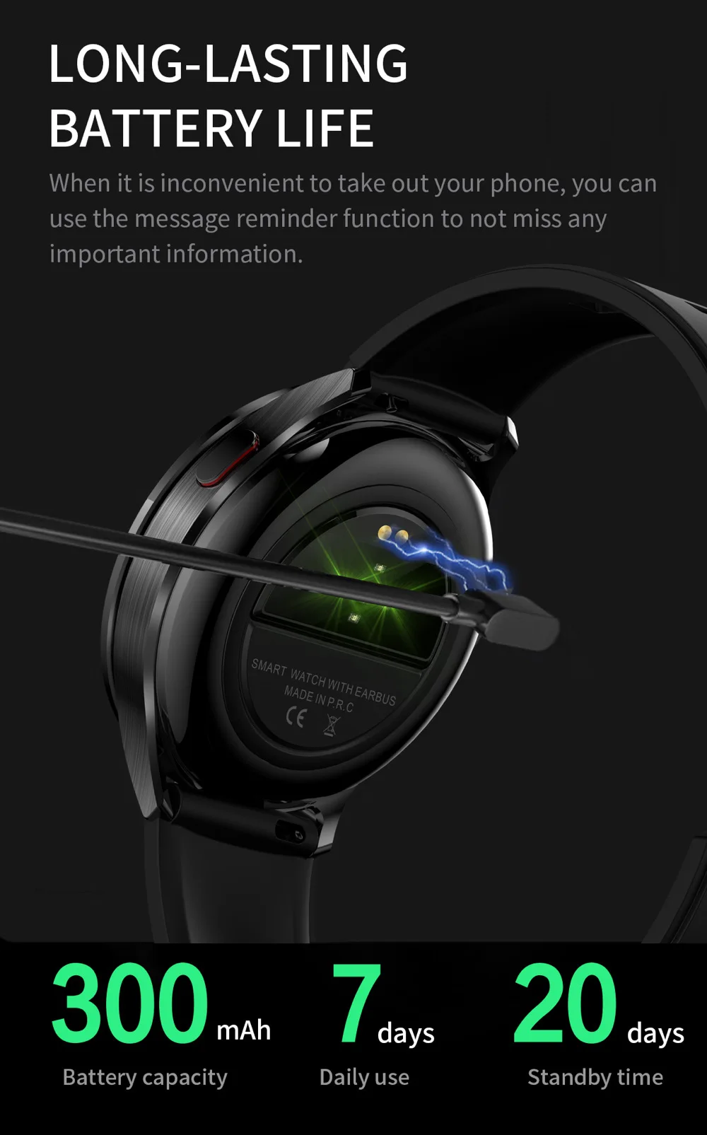 2.capacidad de la batería: 300 mAh.