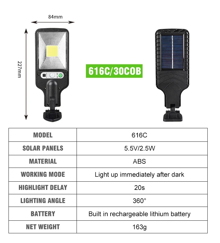• Tecnología de sensor COB: Equipada con tecnología de sensor COB, esta farola proporciona una iluminación óptima para su espacio exterior, mejorando la seguridad y la protección.• 3 modos de luz: Con 3 modos de luz, esta lámpara se puede personalizar para adaptarse a diferentes necesidades y condiciones de iluminación, brindando flexibilidad y conveniencia.• Diseño resistente al agua: El diseño resistente al agua de esta lámpara garantiza su longevidad y rendimiento confiable incluso en condiciones climáticas adversas, lo que la hace ideal para uso en exteriores.• Energía solar: alimentada por energía solar, esta lámpara es ecológica y no requiere nada para funcionar, lo que la convierte en una opción perfecta para los consumidores conscientes del medio ambiente.• Función de control remoto: la lámpara viene con una función de control remoto que le permite ajustar la configuración de iluminación a distancia, ofreciendo comodidad y facilidad de uso.• Estilo moderno: Con un estilo moderno, esta lámpara no solo tiene un propósito funcional sino que también agrega un toque de elegancia y sofisticación a su espacio exterior.• Energía solar: No necesita electricidad, esta lámpara funciona con el sol, lo que la hace ecológica y rentable.