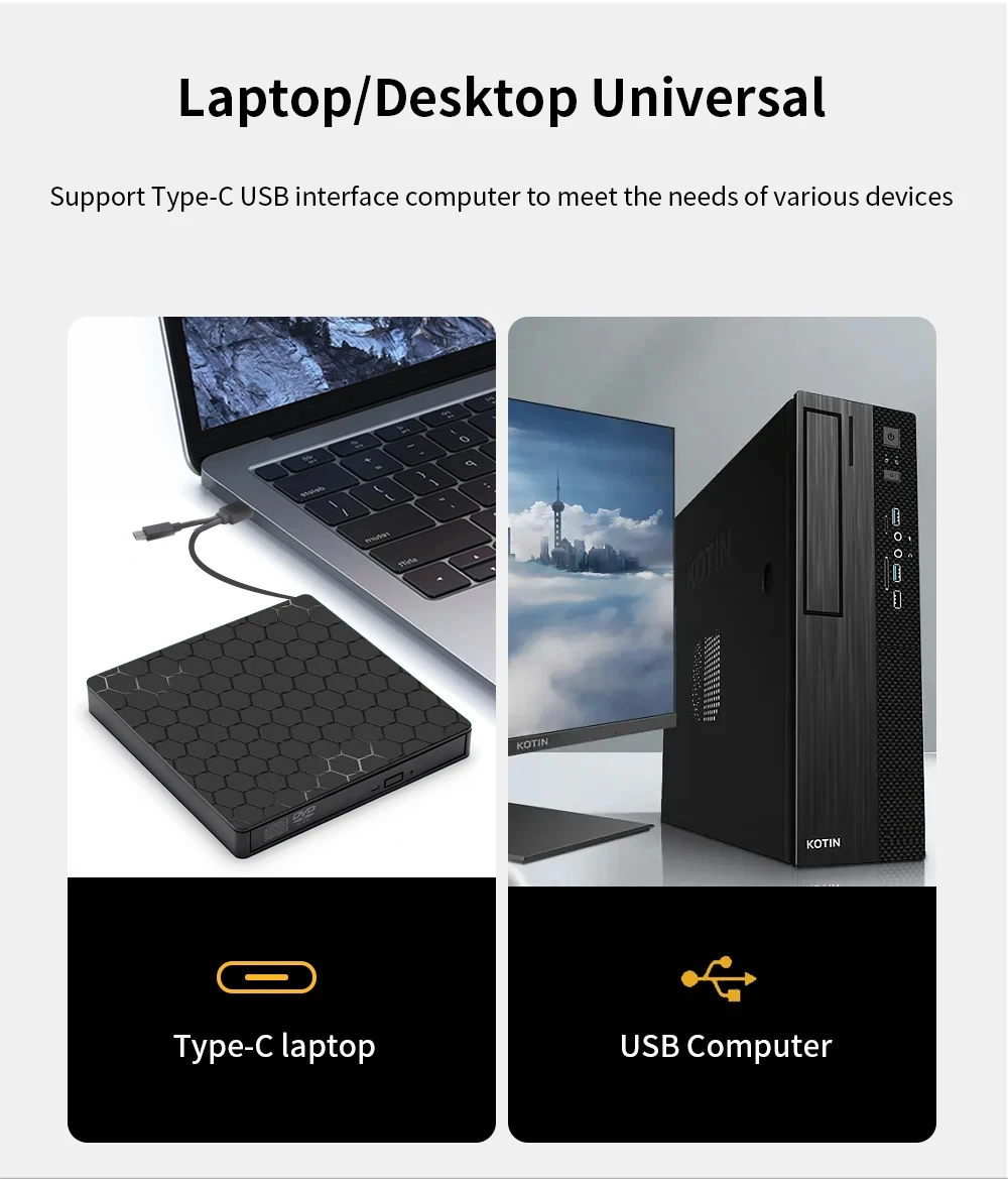 • Puerto USB 3.0 tipo C: la unidad DVD RW externa AMMTOO cuenta con un puerto USB 3.0 tipo C, lo que garantiza una transferencia de datos rápida y un rendimiento óptimo.