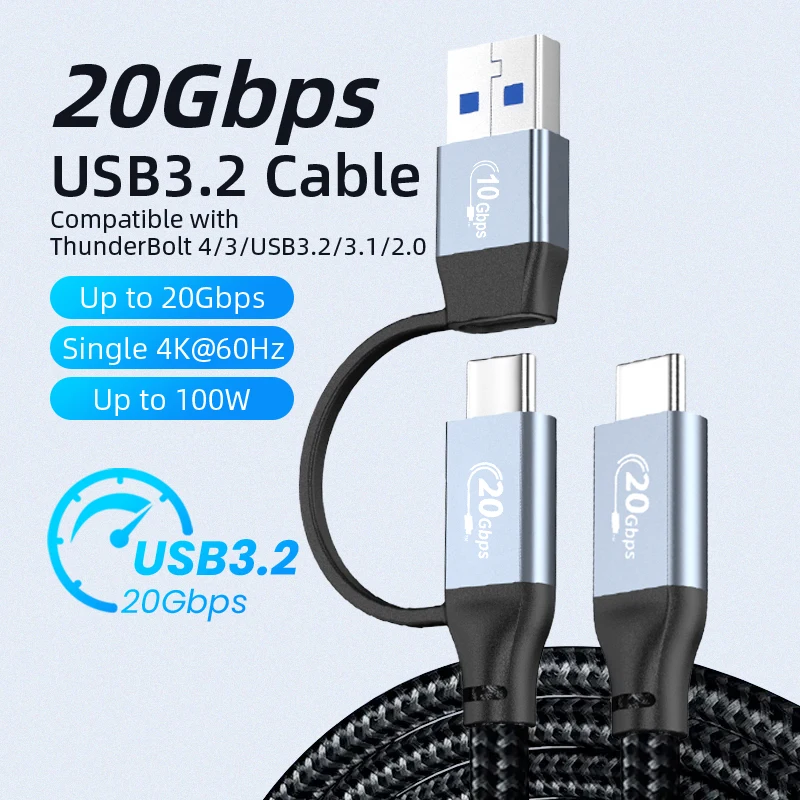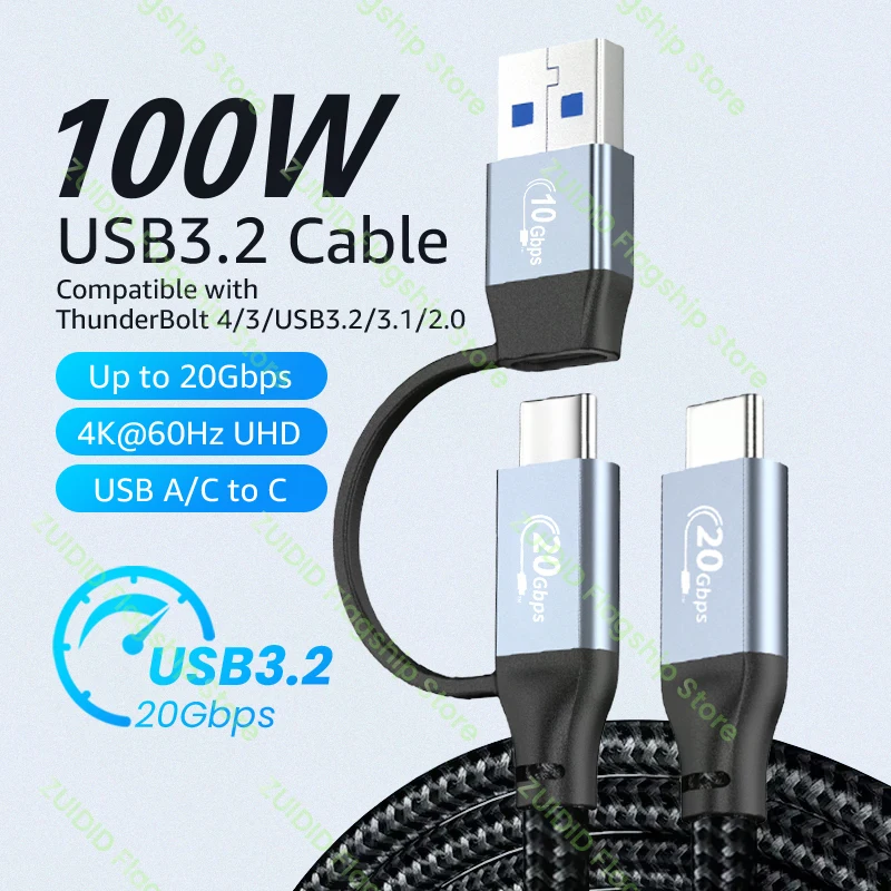 Comprar 2 en 1 USB3.2 10/20Gbps USB C/A a tipo C ThunderBolt 3 Cable de datos 4K @ 60Hz PD100W Cargador rápido para MacBook Pro Samsung Xiaomi