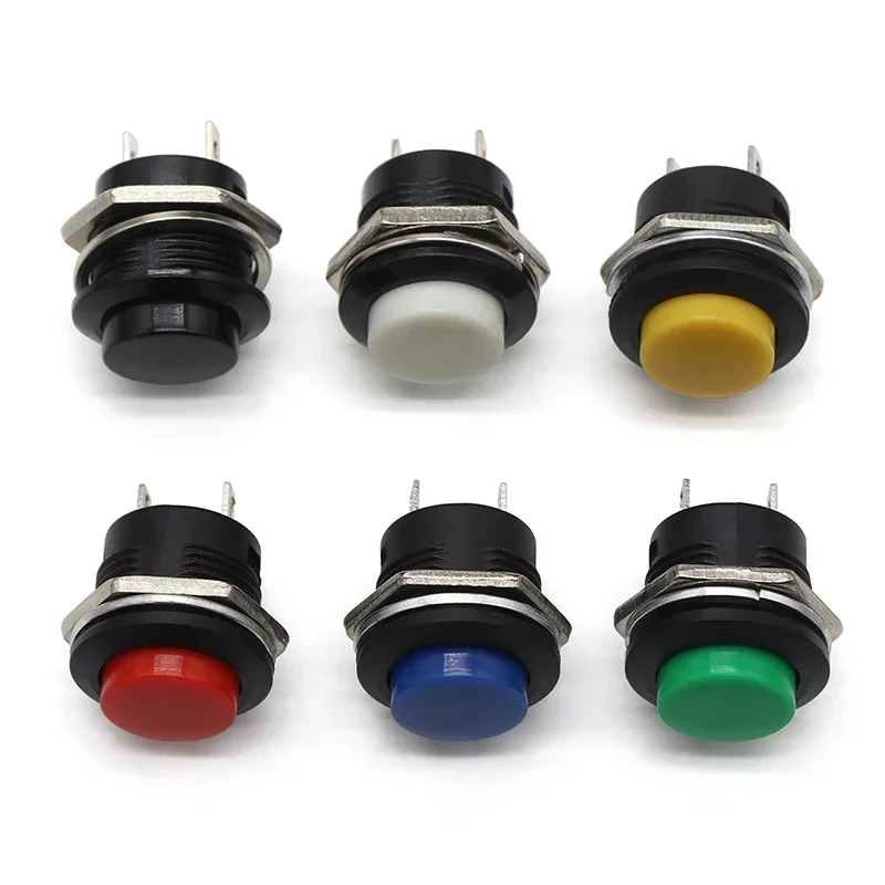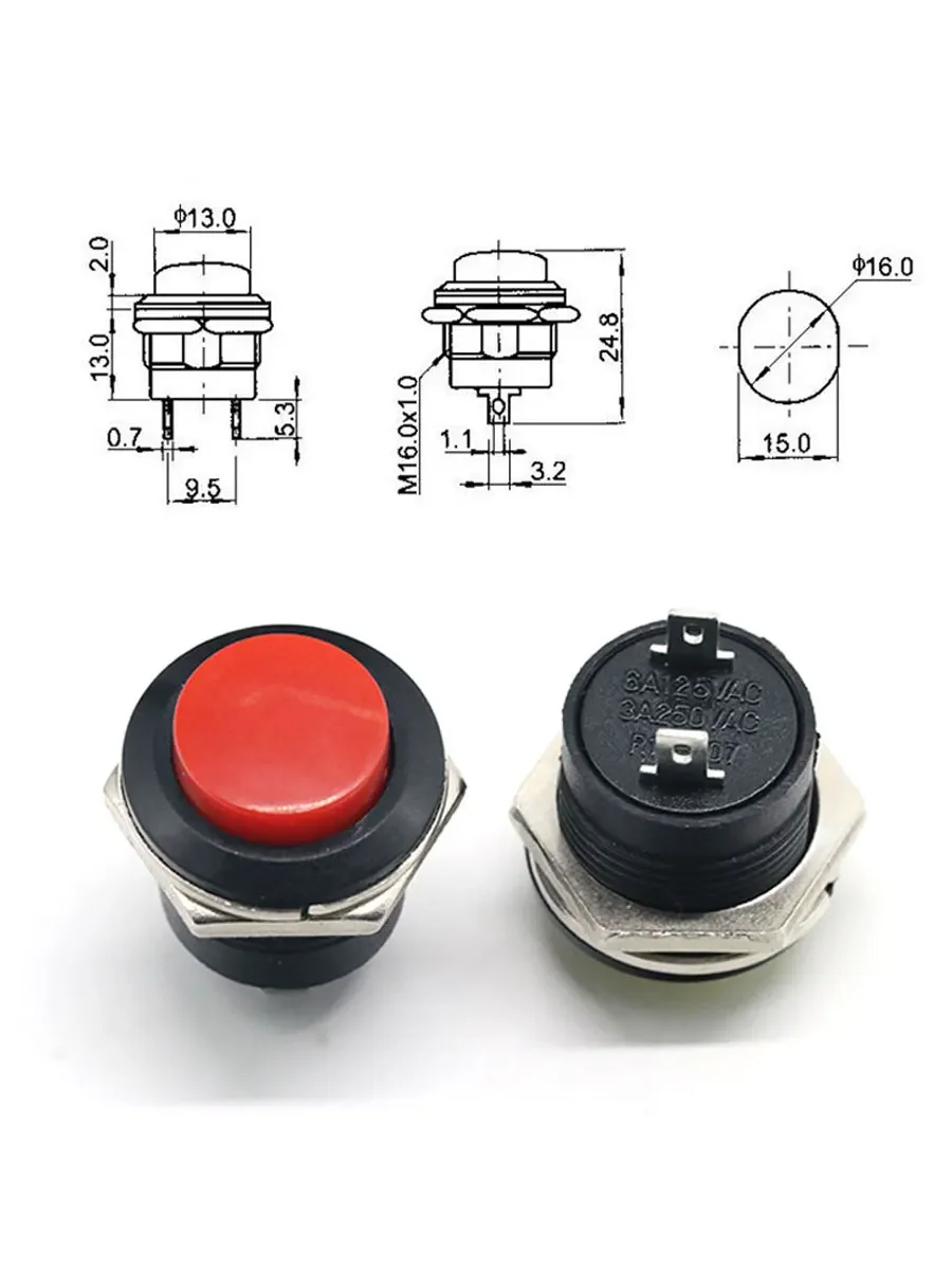 Comprar 2/10/50 Uds R13-507 interruptor de botón momentáneo 16mm momentáneo 6A/125VAC 3A/250VAC interruptores redondos