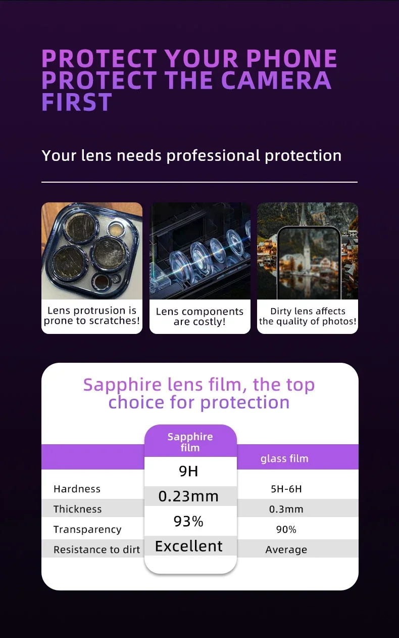 2-3 uds 9H cubierta de protección de lente tecnología PVD película de lente de teléfono móvil pegatina protectora de cámara para Iphone 17 16 Pro Max 14 Plus