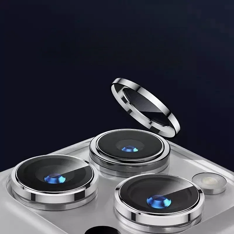 Cristal de lente de anillo de Metal para iPhone 15 Pro Max 15pro Protector de cámara de aleación cubierta de tapa de película de lente trasera con posicionador