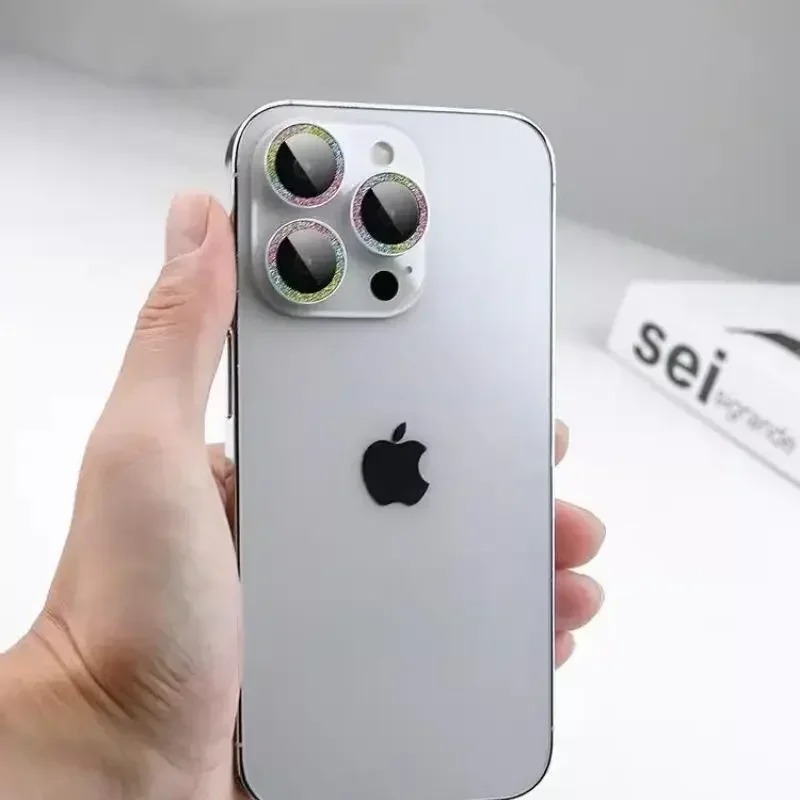 2-3 Uds pegatina de Flash para Iphone 16 15 Pro Max película de lente 14pro anillo de lente más tapa de lente templada de cámara 13 Mini Control de polvo 12