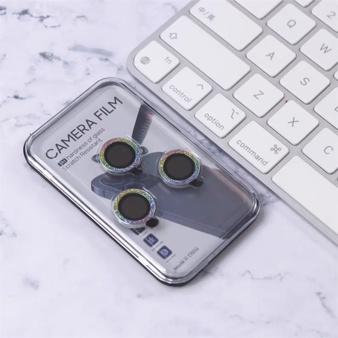 Protección de lente de cámara de diamante colorido para iPhone 17 Pro Max Protector de pantalla de lente de vidrio templado de Metal para 15 16
