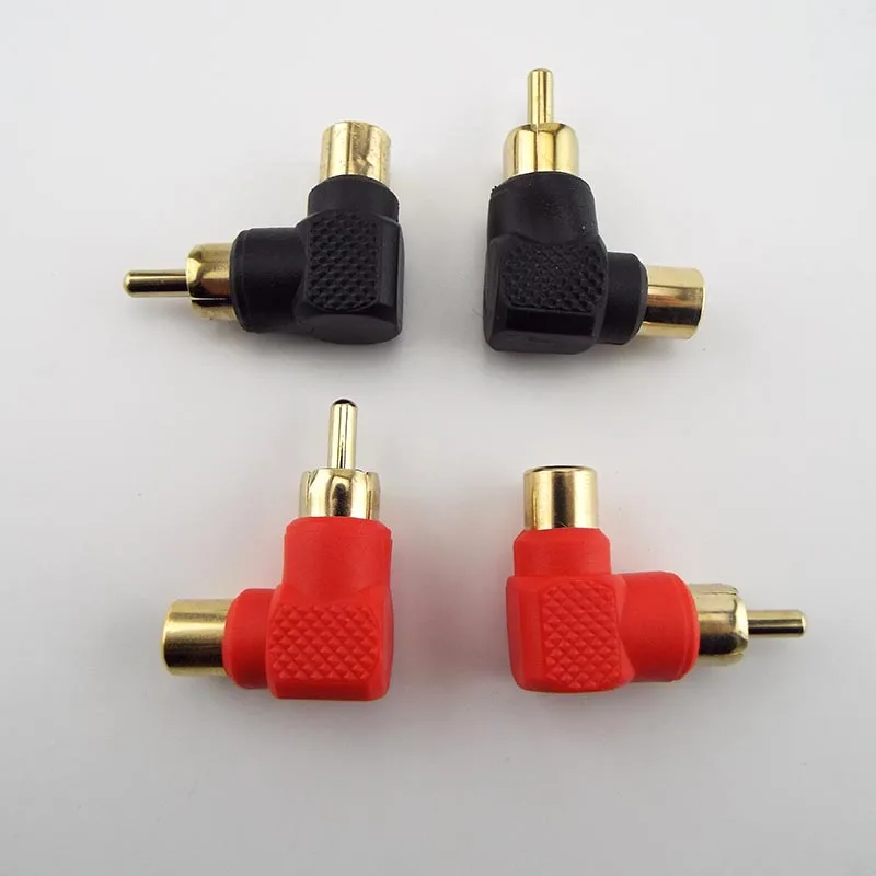 Adaptadores de enchufe de conector de ángulo recto macho a hembra RCA de 90 grados M/F Adaptador de Audio de 90 grados chapado en oro