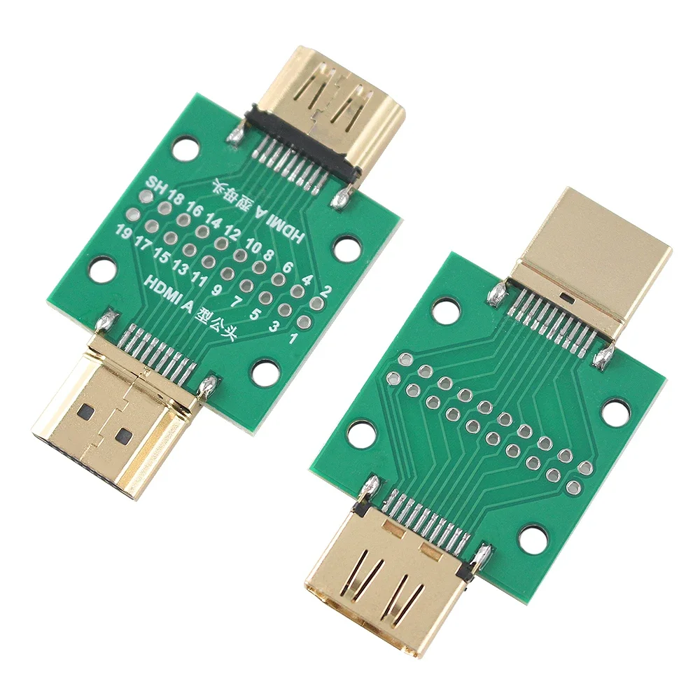 2/4 Uds HDMI tipo A placa de prueba macho a hembra Mini conector con placa PCB 2,54mm paso placa adaptadora de conversión macho-hembra