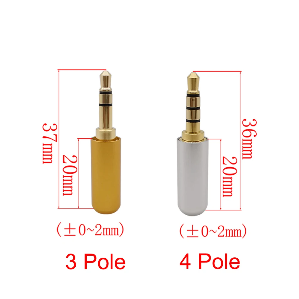 Comprar 2/5/10 Uds 3,5mm 3/4 polos enchufe macho conector de Audio estéreo chapado en oro 3,5mm auriculares Mini adaptador Jack para reparación