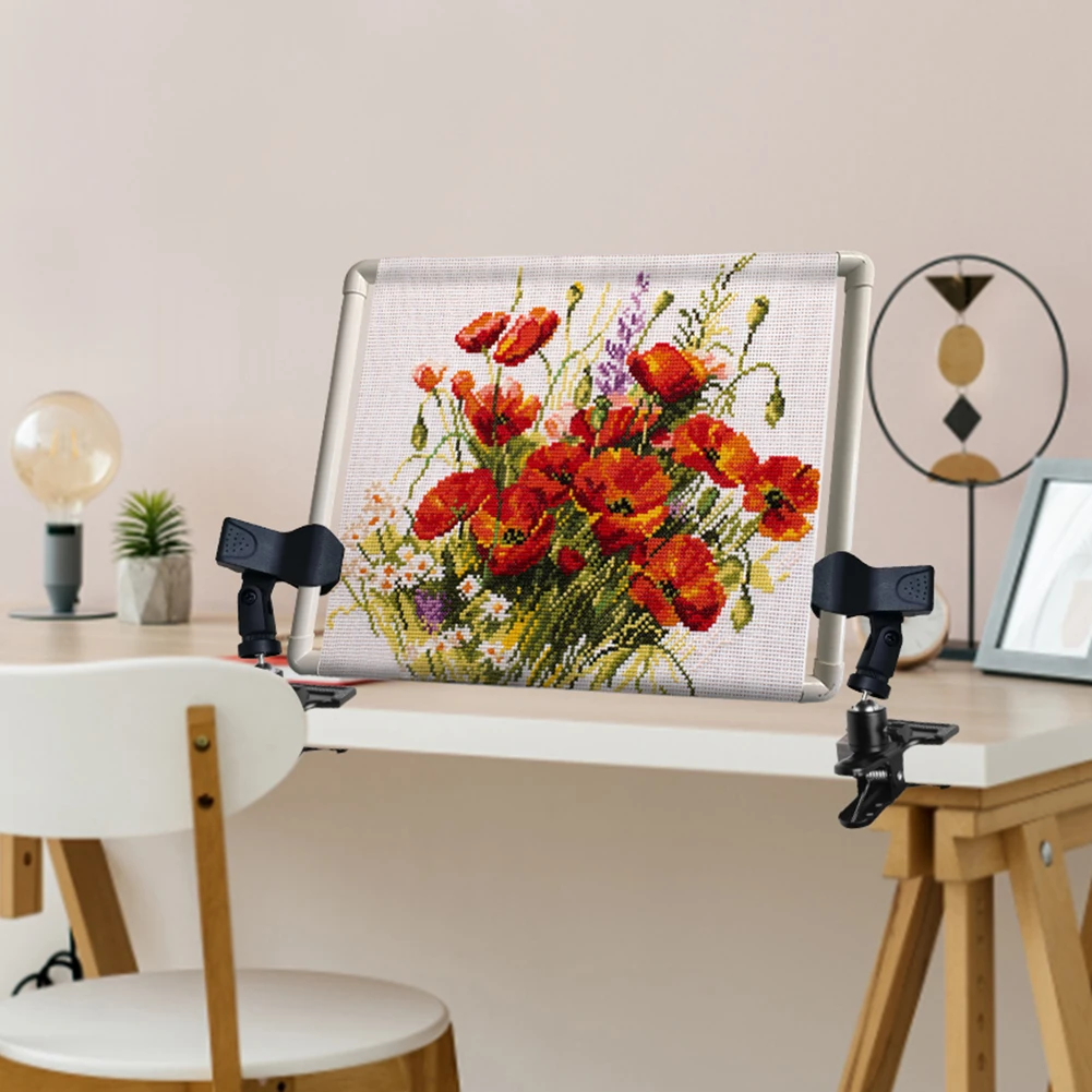 1 Pair Cross Stitch Clip Clamp Rotatable Table Edge Embroidery Clip Widely Used Adjust Angle Non-slip Desktop Board Holder Feature: 1. High quality material: the camera clip is made of steel spring and has a great clamping force. The maximum opening of the clip is about 35mm. Both sides of the clip mouth are equipped with rubber protective covers to prevent slipping and scratching, so as to protect your cross stitch cloth or expensive cameras and tools. 2. Wide application: The solid clip body is made of metal, which is sturdy and durable. The 360 degree clip is widely used in recording studio background cameras, flash lamps, monocular cameras, mobile phones, embroidery, or desktop boards. 3. Rotation angle: the camera clip is attached with a ball head, which can rotate 360 degrees, making it very convenient to adjust the angle. 4. Easy to use: It can be clipped onto almost anything in the studio, providing you with the place where you need it most. 5. Packing list: 2 table side PTZ embroidery clips, 2 interface clips, and spring clip suitable for 15mm-48mm diameter.