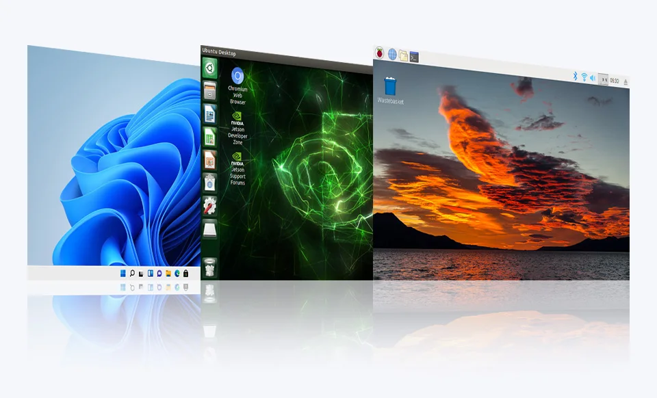 Raspberry Pi OS, Ubuntu (Jetson Nano), PC virtual VMware, etc.