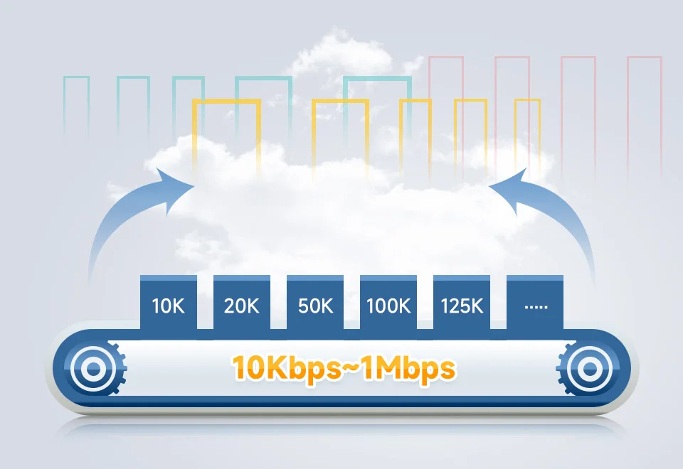 La velocidad en baudios CAN se puede configurar en el rango de 10 Kbps-1 Mbps.Admite cálculo de velocidad de transmisión, detección automática y configuración a través de la herramienta de configuración