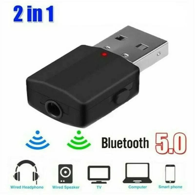 Comprar 2 en 1 Mini USB Bluetooth 5,0 transmisor receptor adaptador 3,5mm 3,5 Jack Audio AUX para TV PC auriculares estéreo coche HIFI Dongle