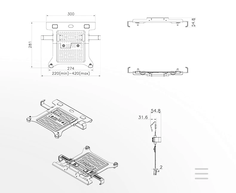 Instalación de ojales: diámetro del orificio dentro de 10-60mm, grosor del escritorio dentro de 10-90mm