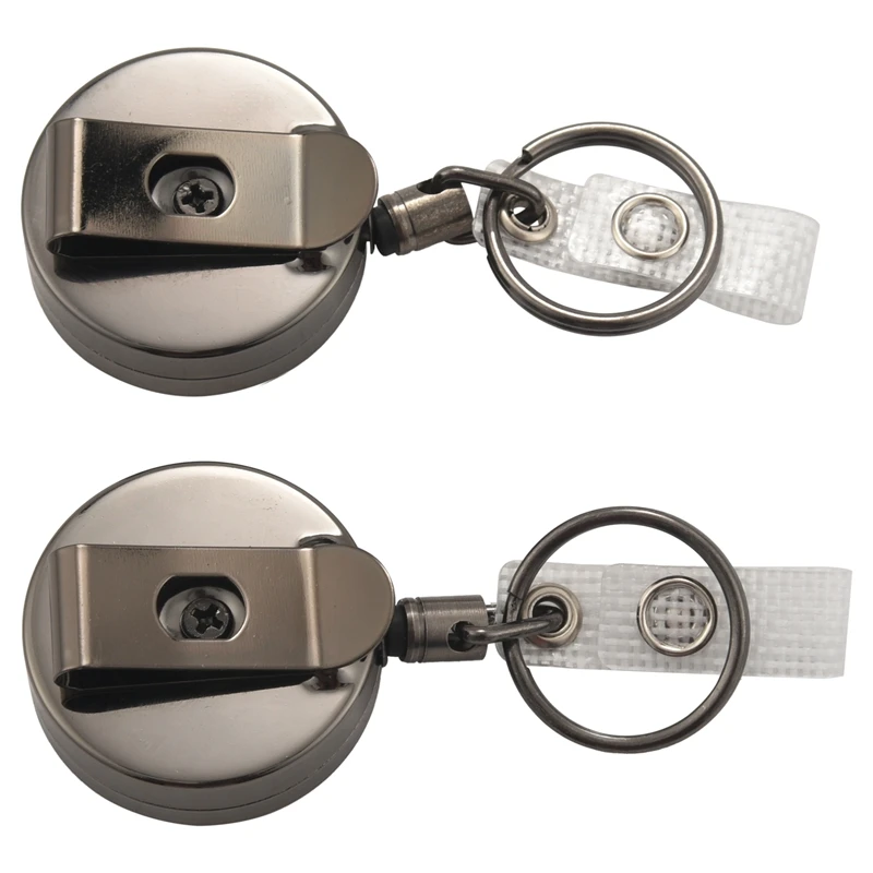Paquete de 2 carretes de soporte de insignia retráctil de alta resistencia, soporte de insignia de identificación de Metal con Clip de cinturón llavero para llavero de tarjeta de nombre Fabricado para durar: la construcción de aleación de zinc metálico con cable de alambre de acero hace que el soporte de insignia retráctil más duradero, probado bajo más de 100.000 tiradores. El paquete incluye 2 piezas de soporte de identificación retráctil con clip de carrete y correa de identificación, dura para siempre.
