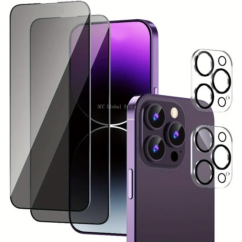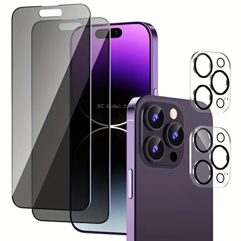 2 paquetes de protectores de pantalla de privacidad con 2 paquetes de cubierta completa lente de cámara protección de vidrio para IPhone 11 Pro Max 12 13 Mini 14 15 Plus