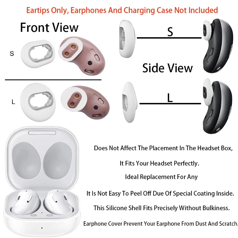 2 pares de cubiertas universales de silicona para la punta del oído, cubiertas de repuesto para Samsung Galaxy Buds Live, accesorios para auriculares internos
