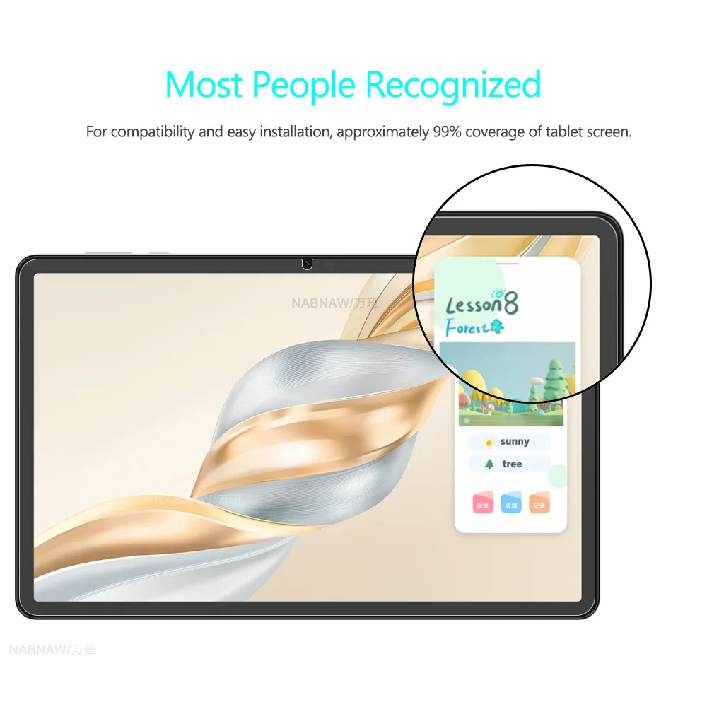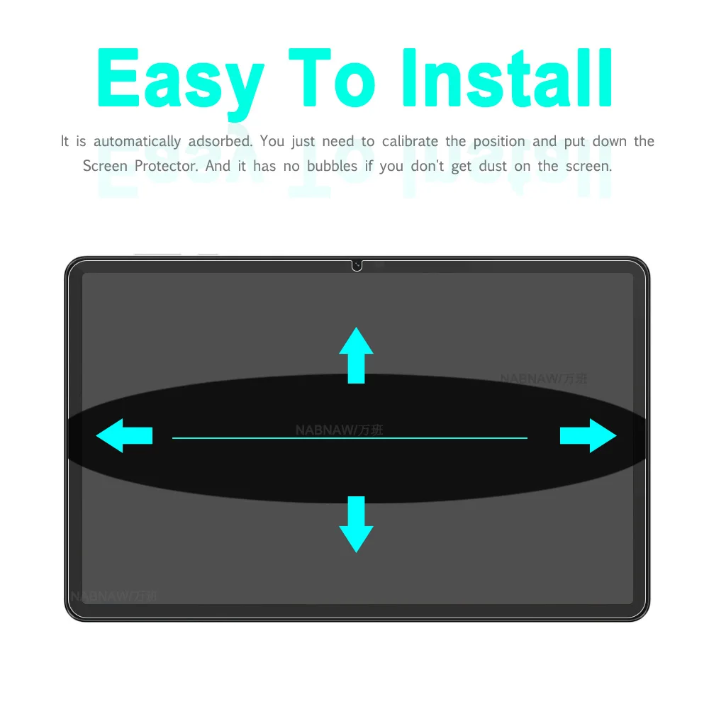 -- tear off and discard the safety film of screen protector, calibrate the position of screen protector and tablet screen and slowly put it down.