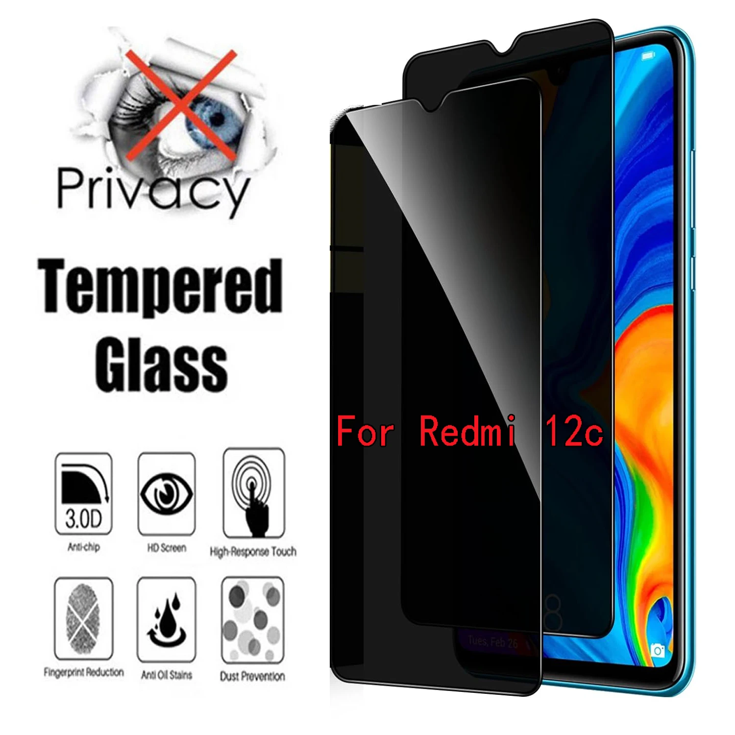 Comprar 2 piezas de vidrio templado antiespía para Xiaomi Redmi 12C película protectora de pantalla de privacidad