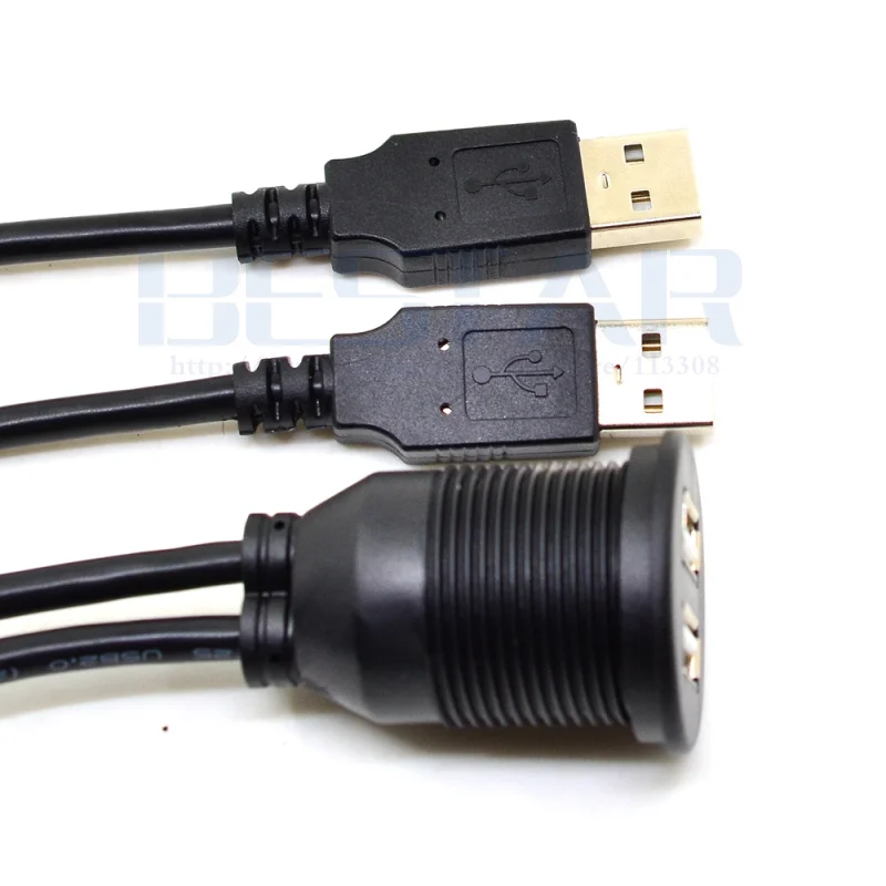 Cable de montaje dual USB 2.0 3.0 de 2 puertos: extensión USB al ras, tablero, cable de montaje en panel, para automóvil, barco, motocicleta y más (3,3 pies/1 m)