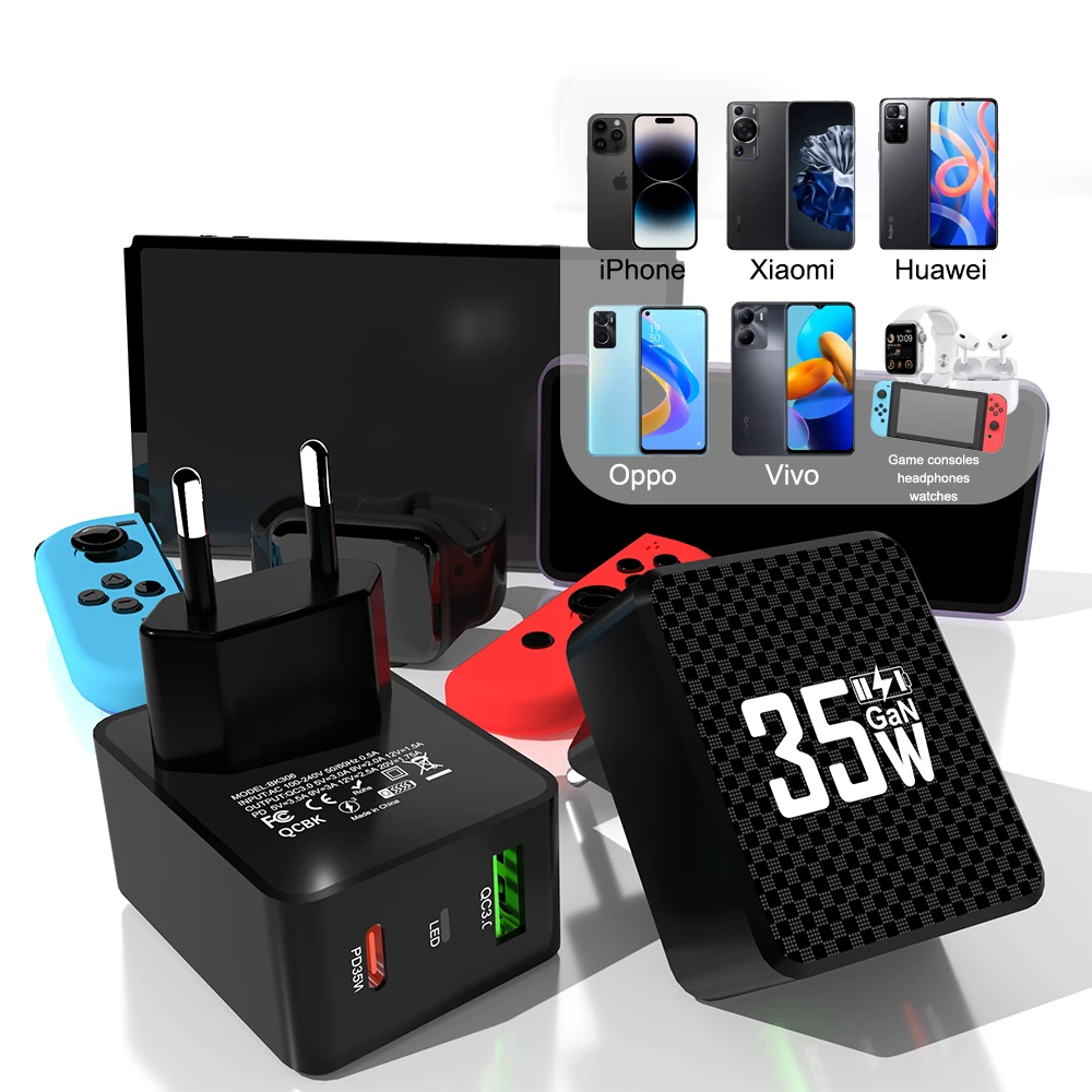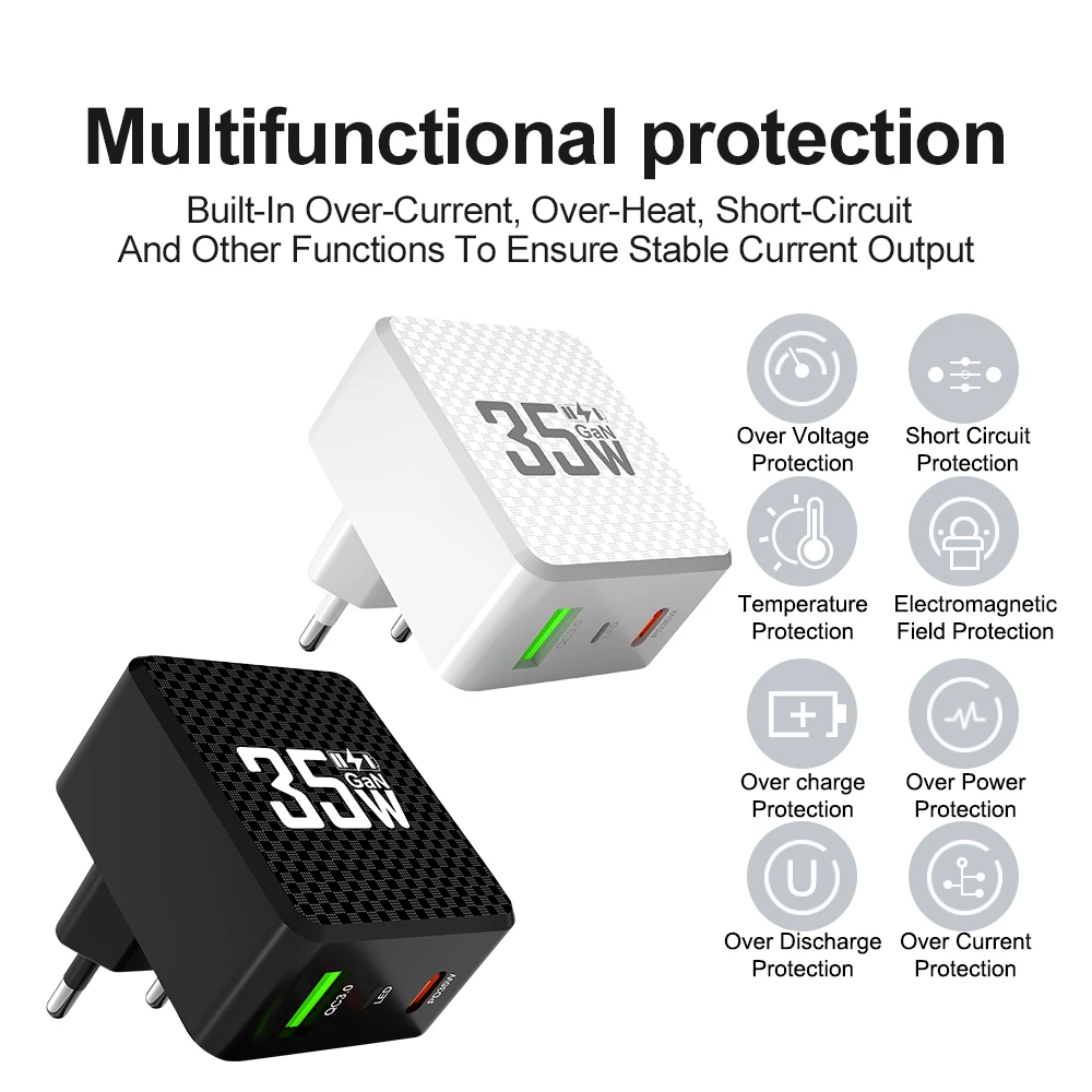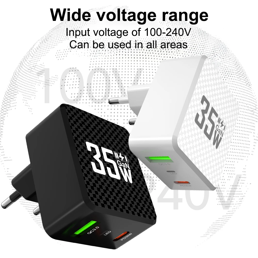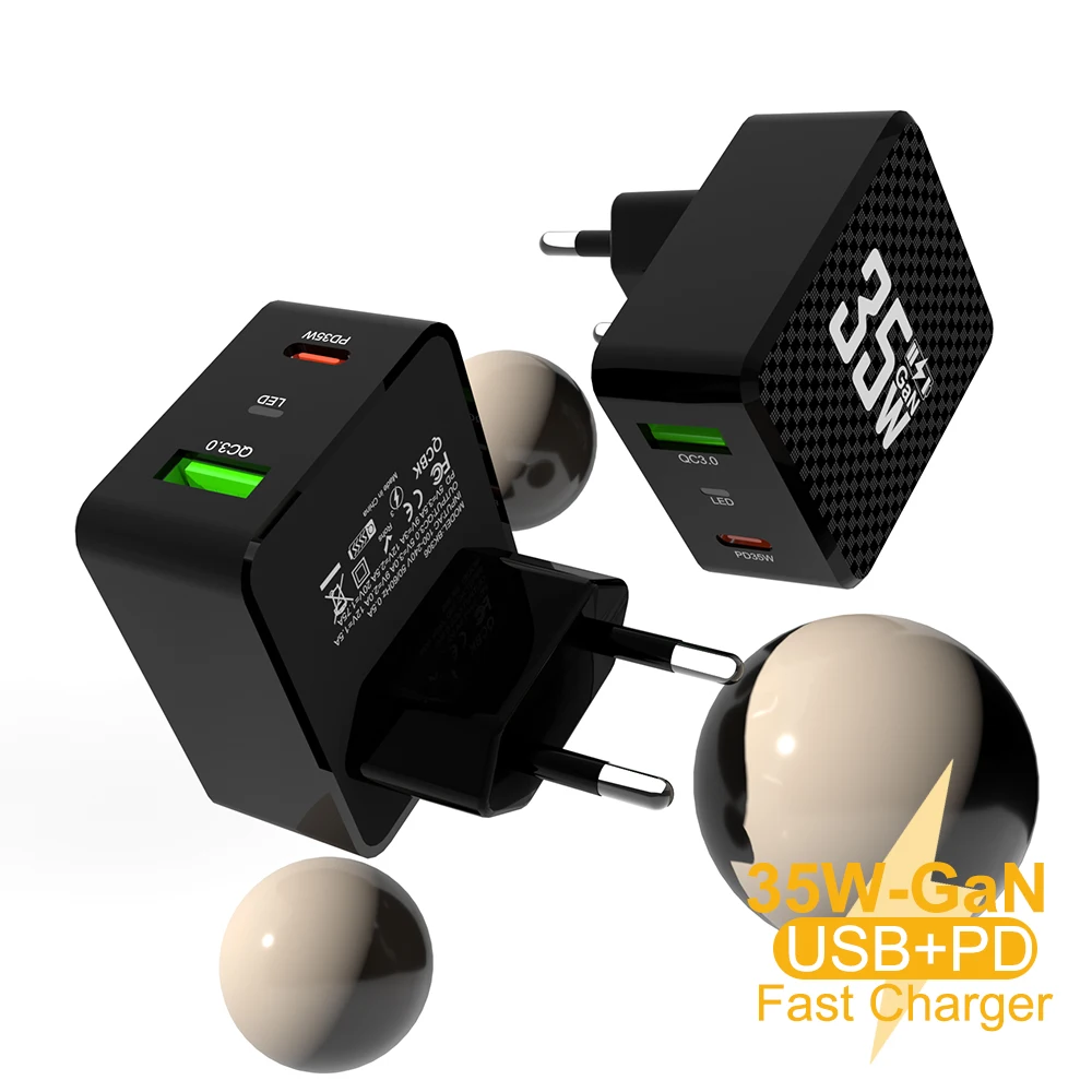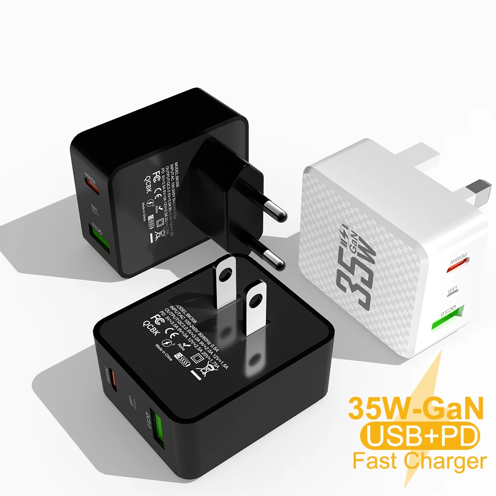 Comprar 2 puertos Mini 35W GaN USB tipo C cargador QC3.0 carga rápida portátil para iPhone 14 Pro Xiaomi 13 Samsung KR/EU/US/UK enchufe