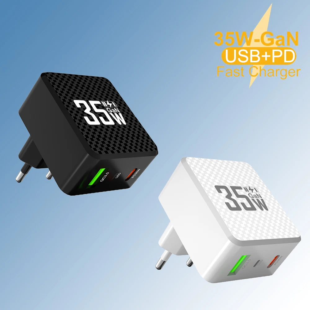Comprar 2 puertos Mini 35W GaN USB tipo C cargador QC3.0 carga rápida portátil para iPhone 14 Pro Xiaomi 13 Samsung KR/EU/US/UK enchufe