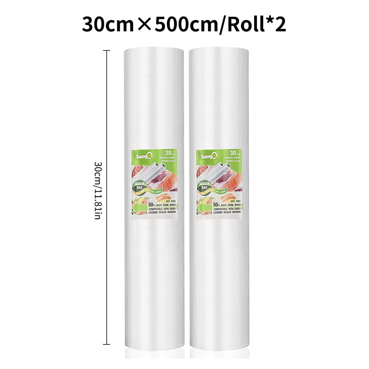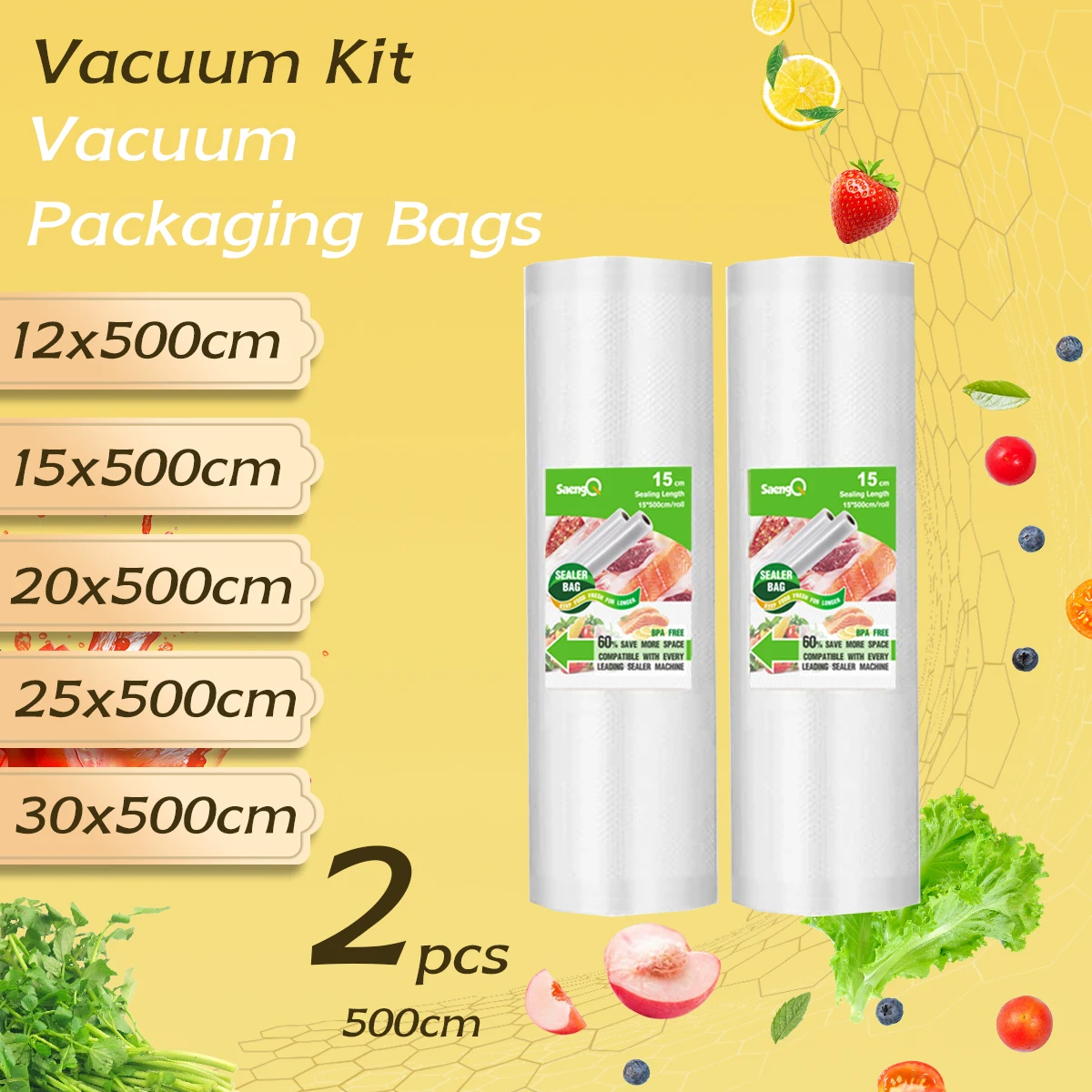Comprar 2 rollos de bolsas en rollo con textura de 500cm de largo, bolsas de compresión al vacío, bolsas en rollo para envasado al vacío de alimentos, 2 paquetes