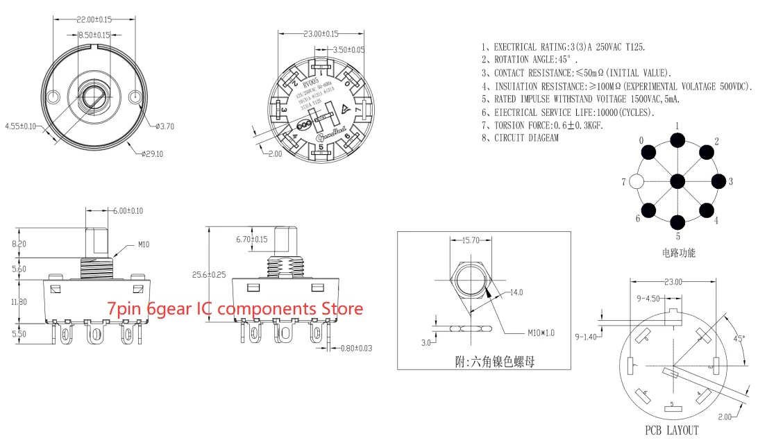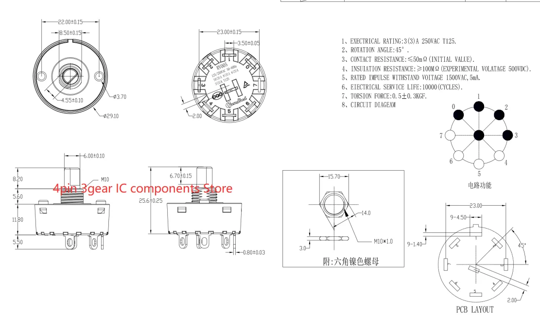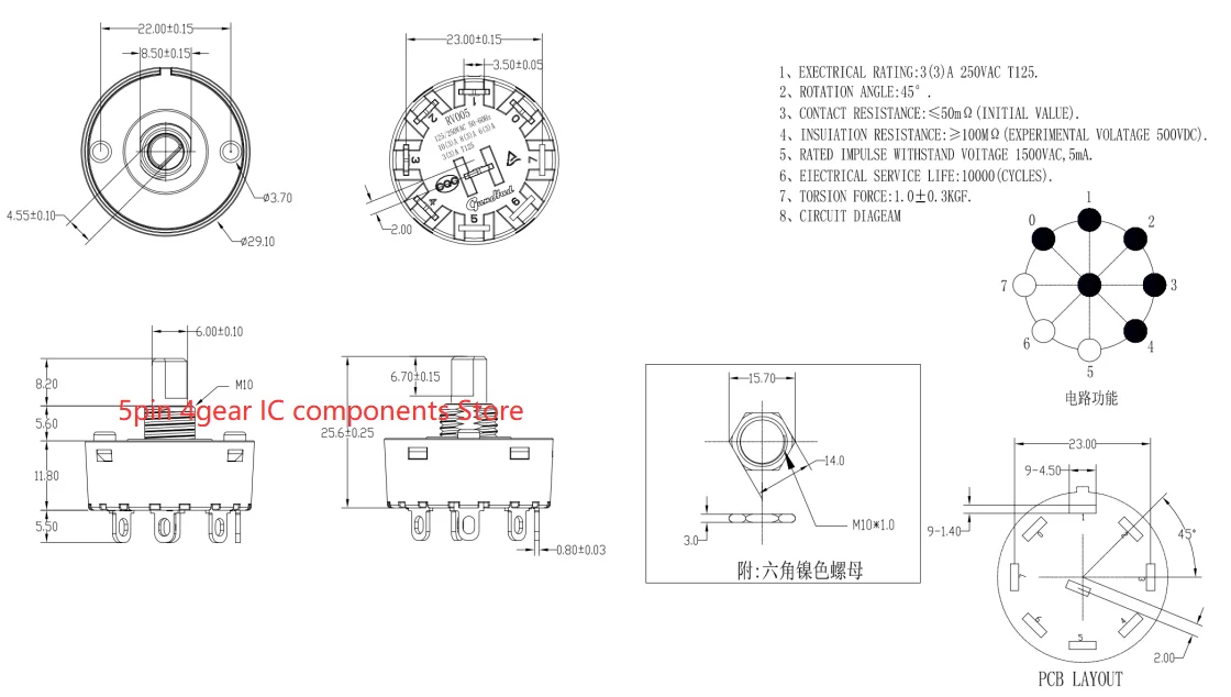2 uds/1 pieza interruptor de perilla de banda de aparato eléctrico rotatorio multiposicional calentador interruptor de engranaje giratorio de licuadora 2 3 4 5 6 7 8 10 pines