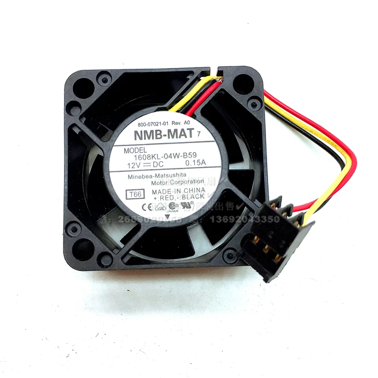Product Description: The NMB 1608KL-04W-B59 is a high-performance 40x40x20mm cooling fan designed for reliable thermal management in networking and computing devices. Operating at 12V with a current draw of 0.20A, it delivers efficient cooling at 5500 RPM while maintaining stable airflow. The dual ball bearing design ensures a long lifespan and durability, making it ideal for continuous operation. With a noise level of just 26.0 dBA, this fan provides effective heat dissipation for sensitive electronic components. Key Features: Compact & Efficient: 40x40x20mm size, perfect for confined spaces High-Speed Performance: 5500 RPM for optimal heat dissipation Long-Lasting Durability: Dual ball bearings ensure extended lifespan Stable Cooling: Designed for continuous operation in demanding environments Versatile Applications: Suitable for switches, chassis, motherboards, and industrial cooling Applications: Network switches and routers Computer motherboards and power supplies Industrial control equipment 3D printers and embedded systems Telecommunications and automation devices