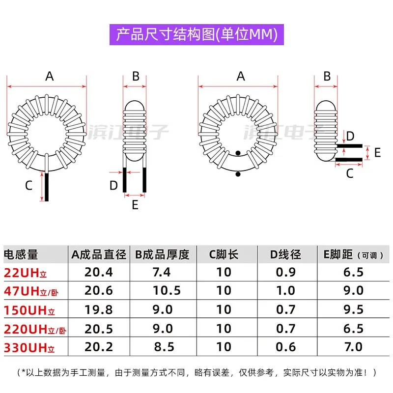 2 uds 18mm Vertical Horizontal 6852A-22 47 150 220 330UH 10A inductor de anillo azul verde alta corriente