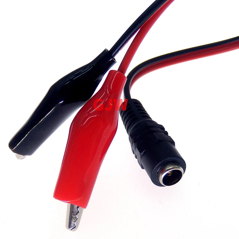 Comprar 2 uds 25cm DC conector Jack hembra macho pinzas de cocodrilo Cable de alimentación de 12V Cable de cocodrilo conector de voltaje CC a macho 5,5*2,1mm