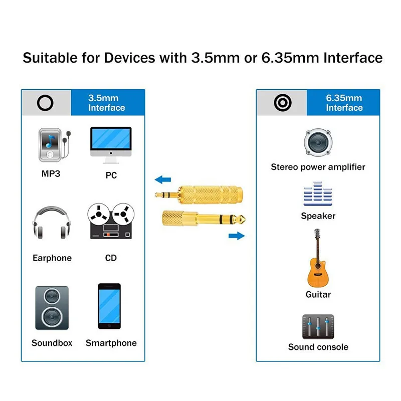 Comprar 2 uds 6,35 Mm Jack Cable estéreo oro 6,5mm 1/4 \ "macho a 3,5mm hembra adaptador de Audio convertidor para auriculares micrófono