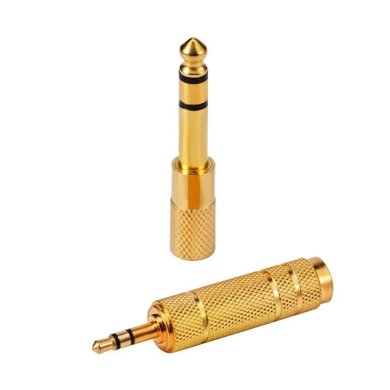 Adaptador de metal dorado enchufe estéreo macho 6,35 mm a hembra 3,5 mm