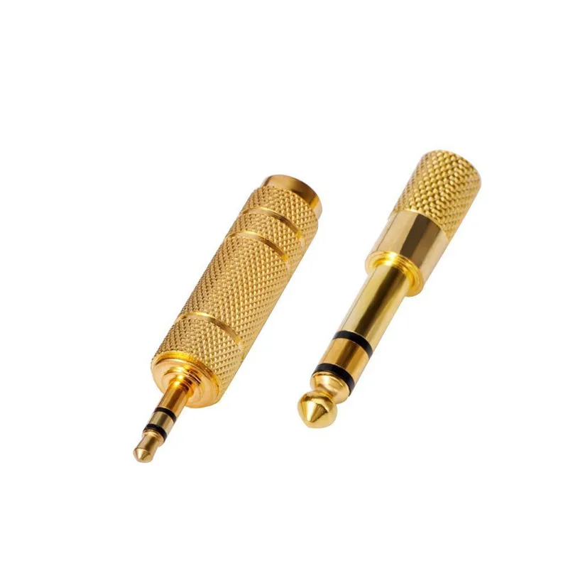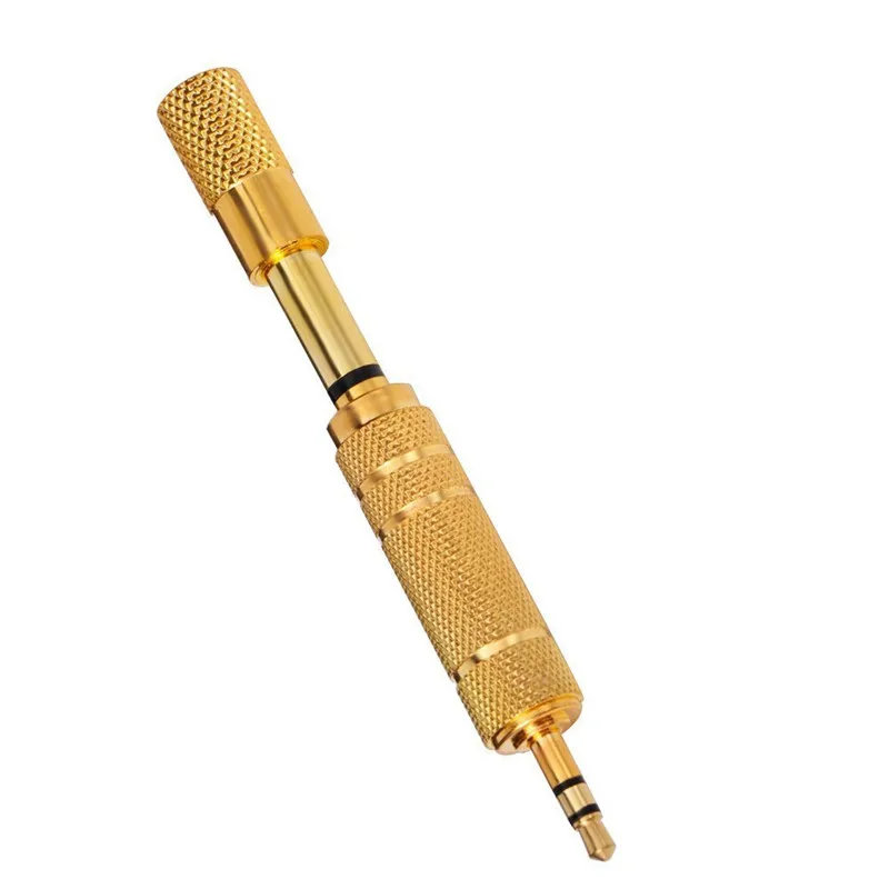 Adaptador de metal dorado enchufe estéreo macho 6,35 mm a hembra 3,5 mm