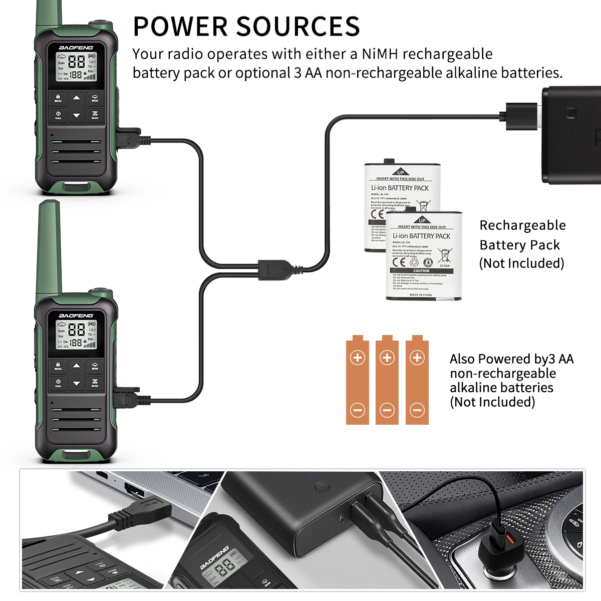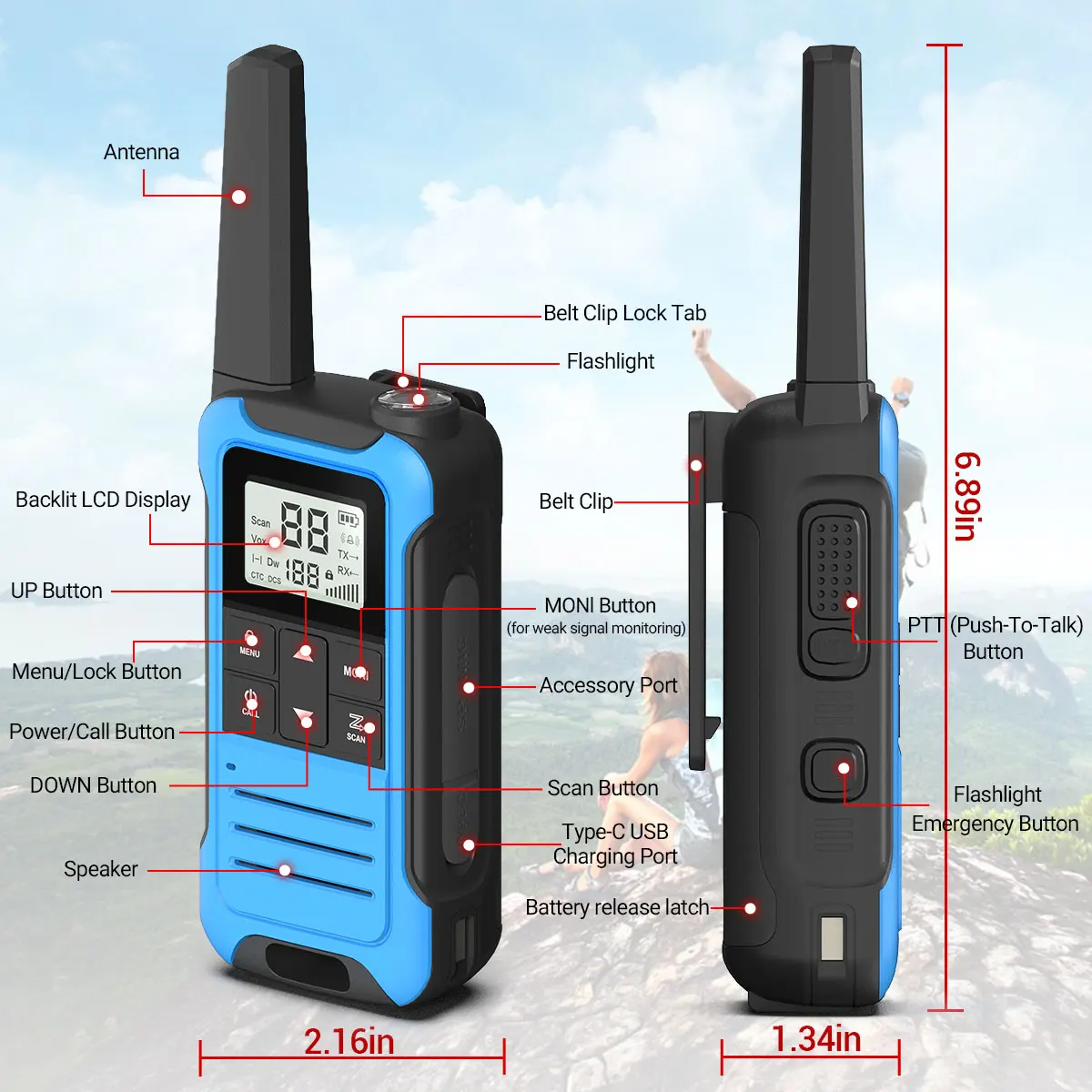 • Gama larga:Con un alcance máximo de 3km-5km, este walkie talkie es perfecto para actividades al aire libre como la caza y camping.