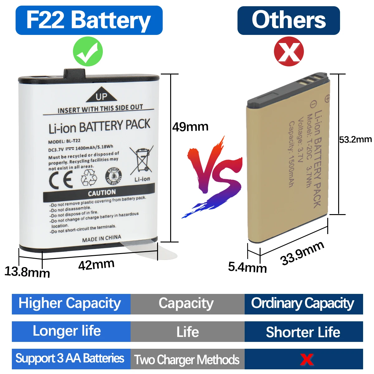 👍【 Tiempo de espera largo y carga USB-C 】 Hasta 18 horas (bajo condiciones de uso típicas). Equipado con cable de carga de tipo C le ayuda a cargar en el coche, Banco de energía y computadora, especialmente conveniente cuando sale. Por lo tanto, no necesita comprar y desechar las baterías repetidamente.