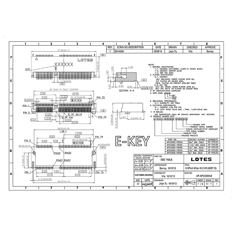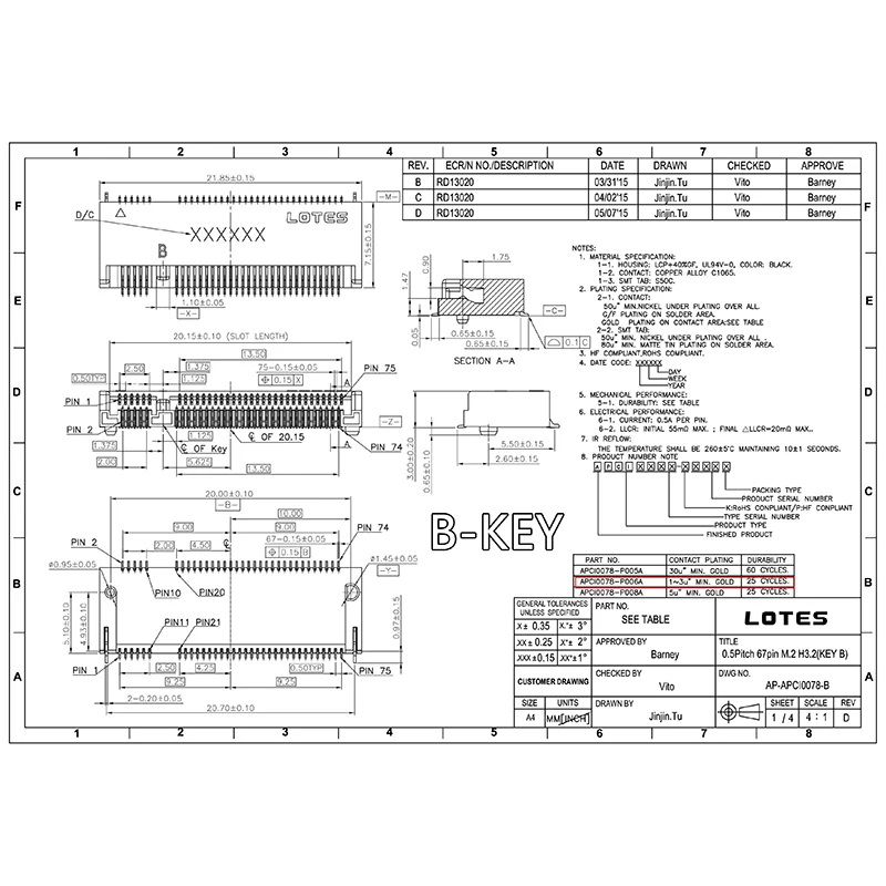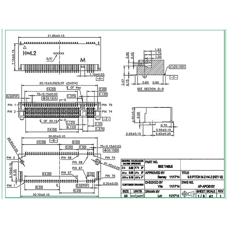 2 uds conector M.2 67P A B E M KEY NGFF interfaz enchufe SSD H=2.3 3.2 4.2 5,5 6.7 8,5 M.2 ranura SSD NGFF enchufe nuevo