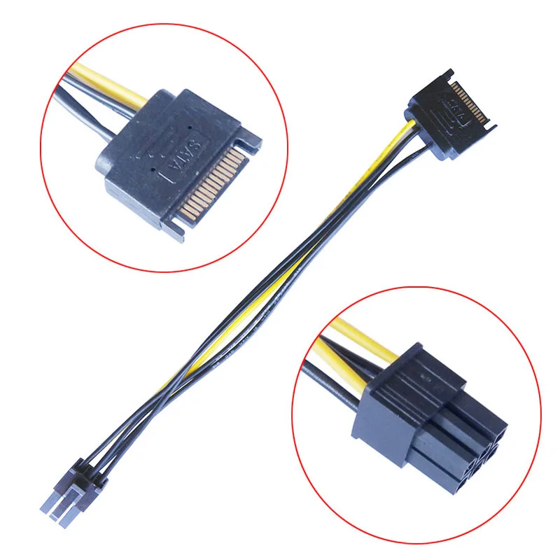 Comprar 2 uds Dual SATA 15pin a 8 pin(6 + 2) 6 PCI-E PCIE Express tarjeta gráfica de vídeo Powrer suministro convertidor adaptador GPU Cables de extensión