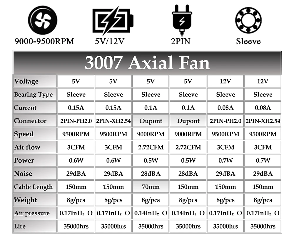 2 ventiladores axiales 3007 o 5 ventiladores axiales 3007 (le enviarán el voltios real que usted elija)