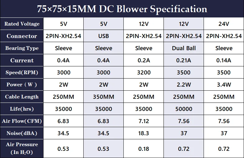 Gdstime 75x75x15mm DC 5V 12V 24V 2PIN/Soplador con conector USB