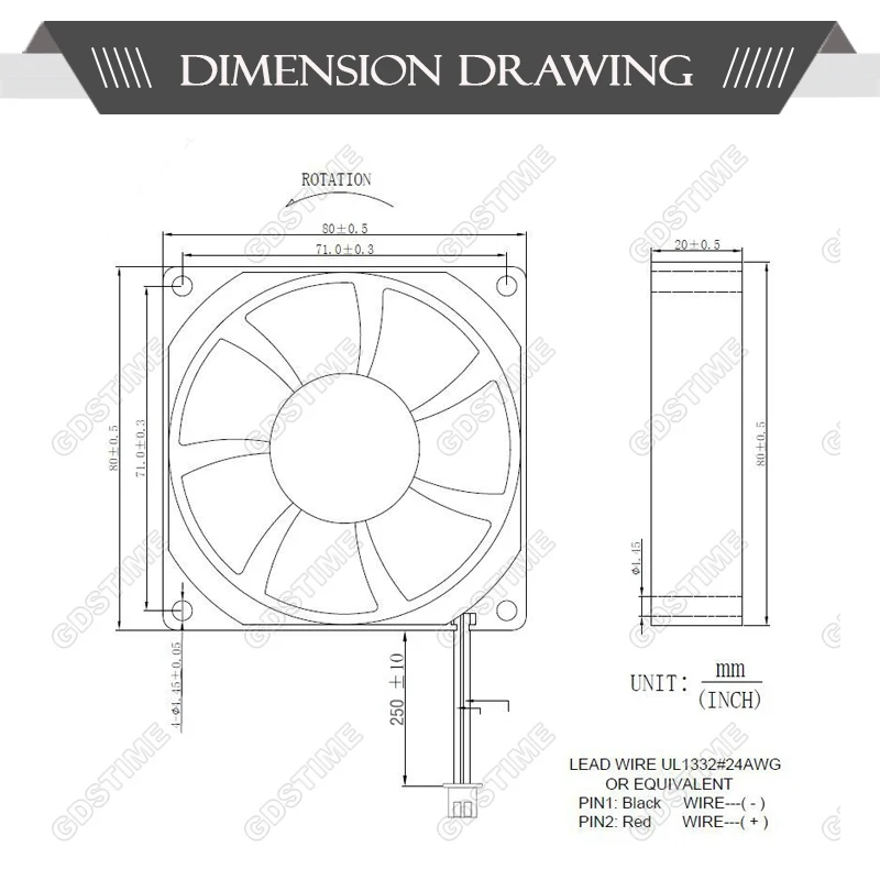 Gdstime 80mmx80mmx20mm DC 24V 12V Cooling Fan 8020 Axial Cooler