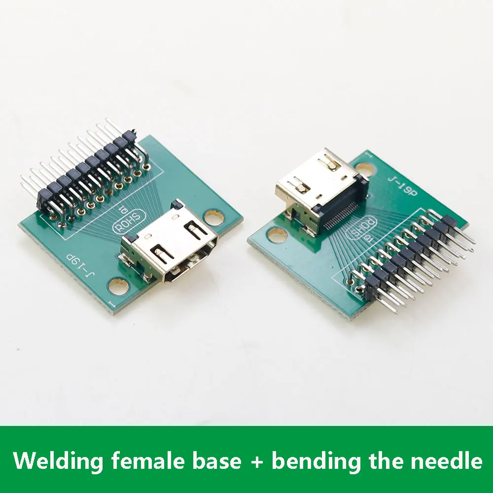 Comprar 2 uds HDMI tipo A 19Pin placa PCB cables de unión sellos HD HDMI conector de enchufe asiento hembra prueba asiento hembra chapado en oro